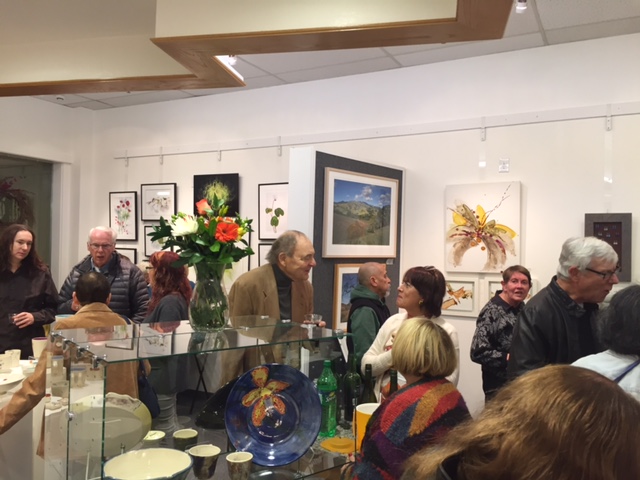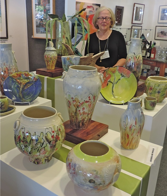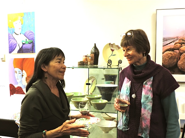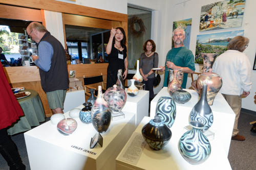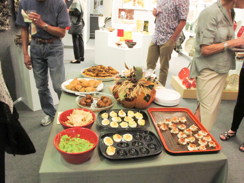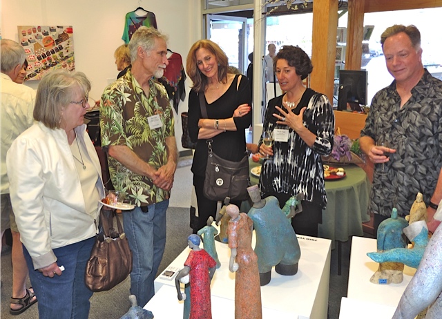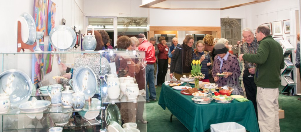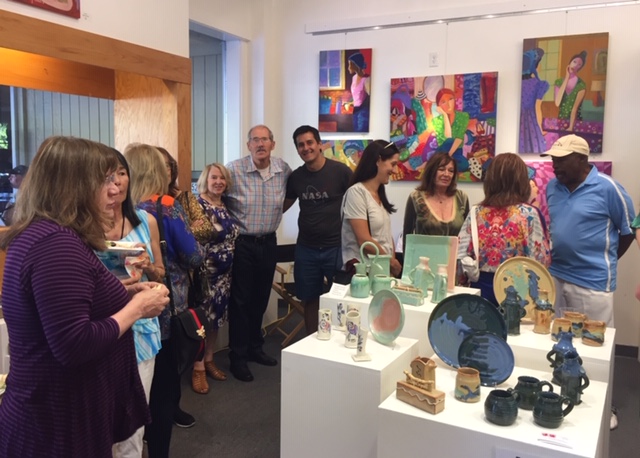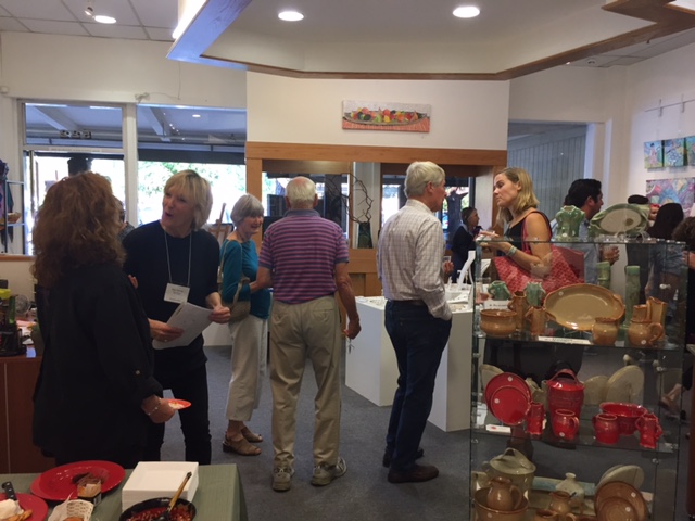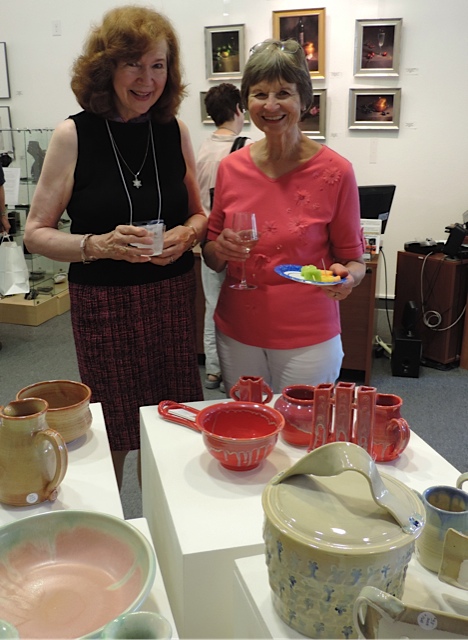 Opening Reception for “Color, Clay & Fire” featuring fine ceramics by Jacqueline Proulx and paintings by Marge Barta Atkins. August 29, 2015