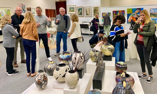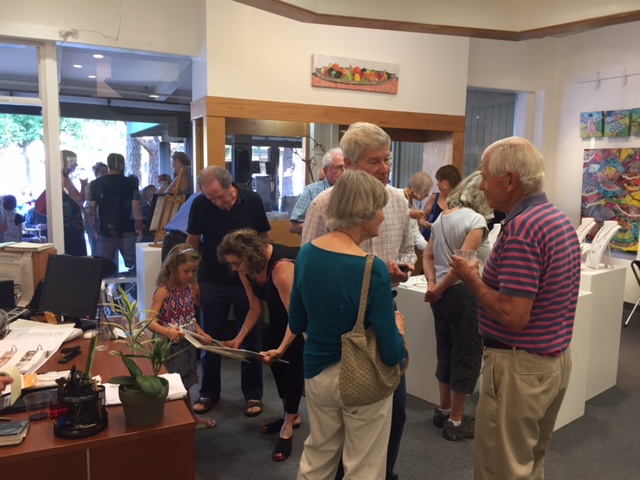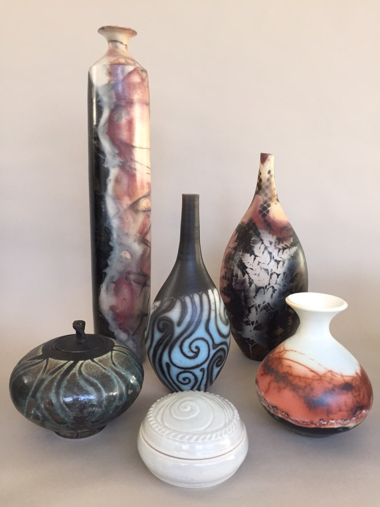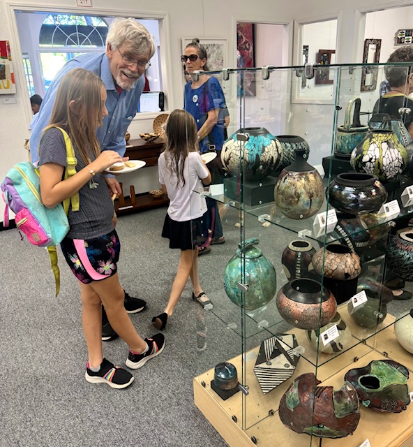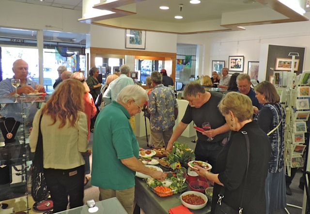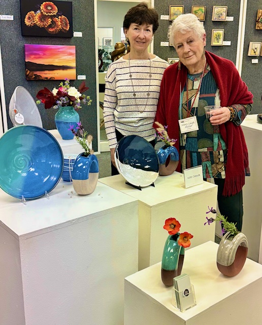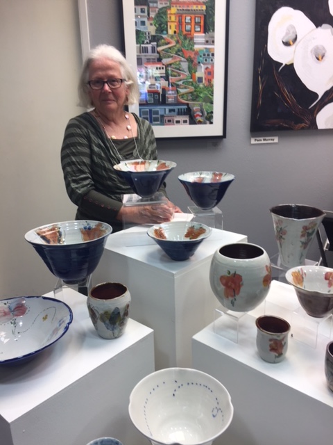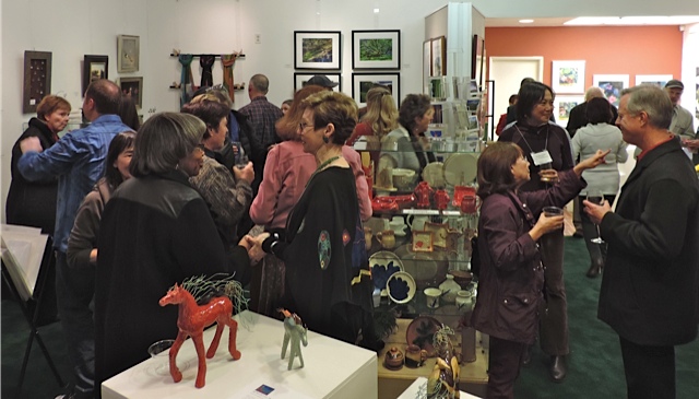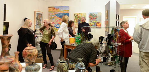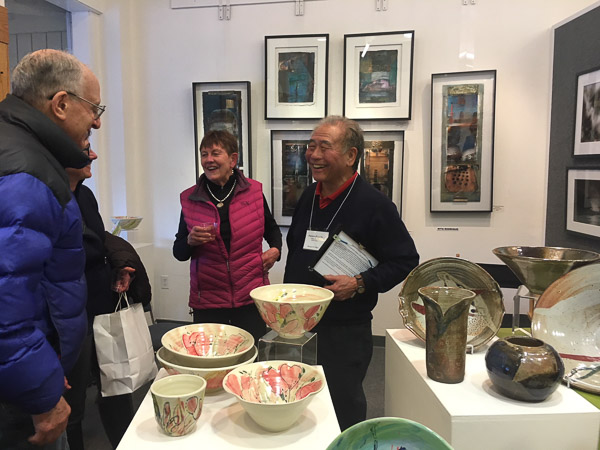 Opening Reception for “Color, Clay & Fire” featuring fine ceramics by Jacqueline Proulx and paintings by Marge Barta Atkins. August 29, 2015