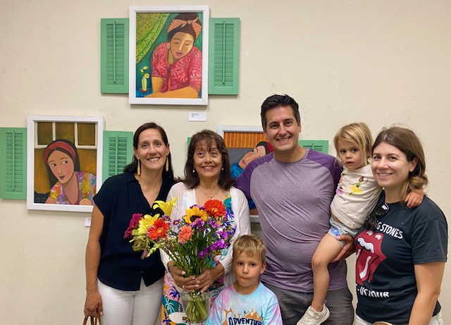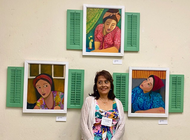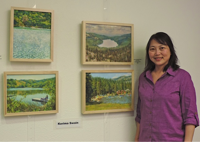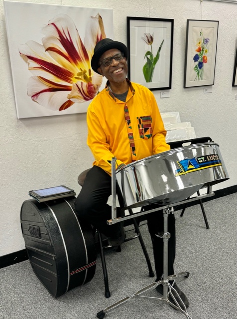 The well attended Opening Reception, Saturday, June 8 for “Vistas and Hues”, featured acrylic painter Angelica Samame and oil painter, Kerima Swain, as well as guest artist, abstract painter Irenka Kudlicki. Accompanied with Carribean music on steel drums by Harry Best.