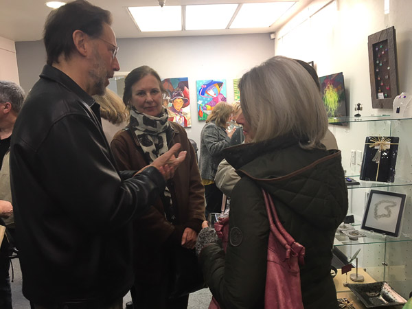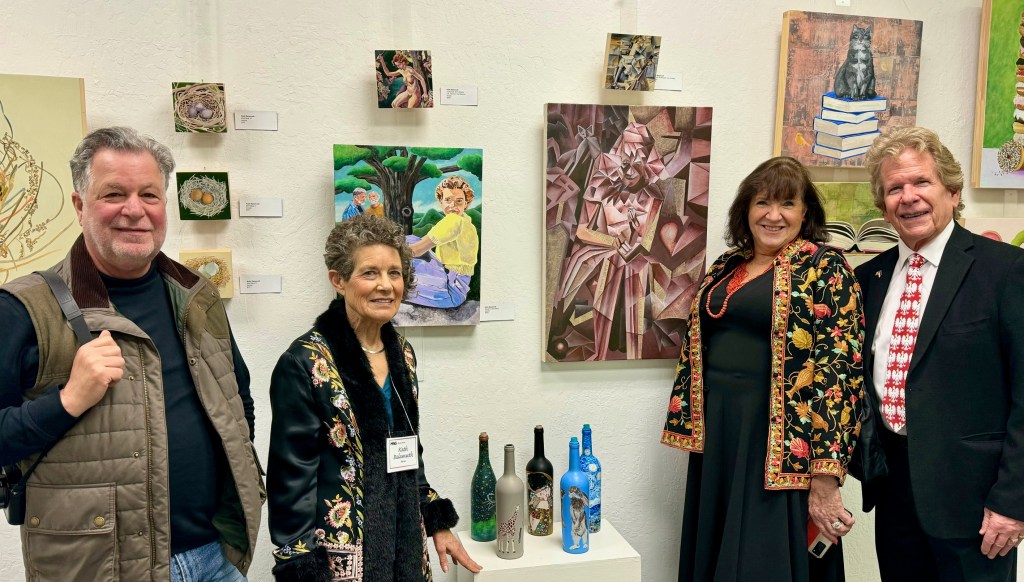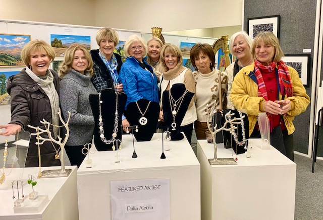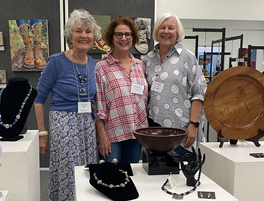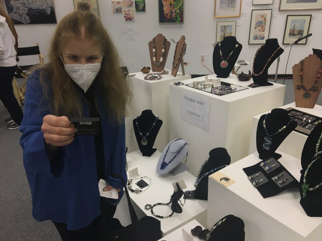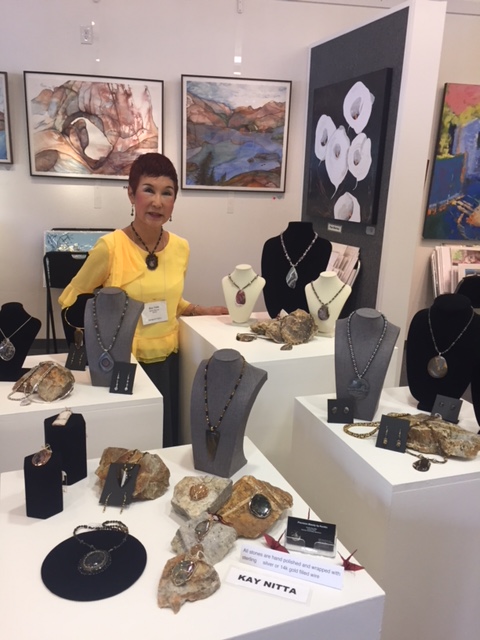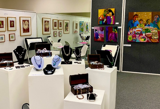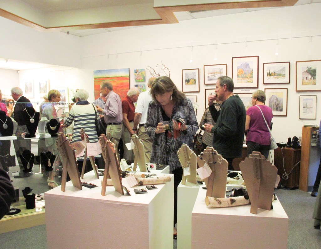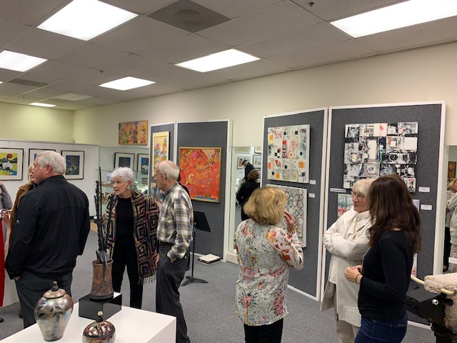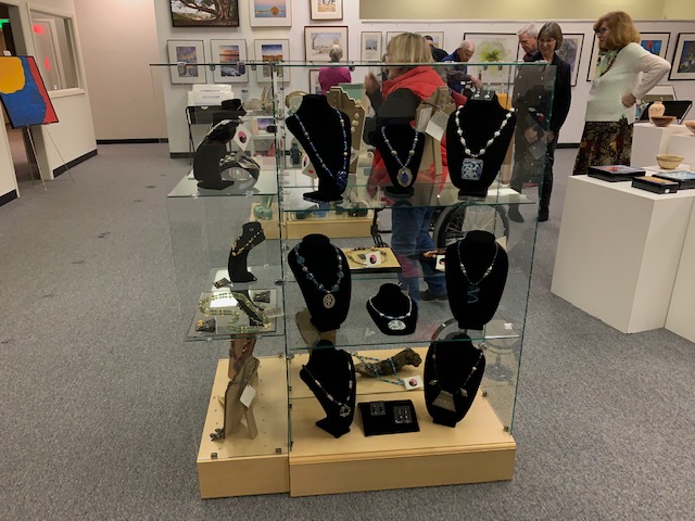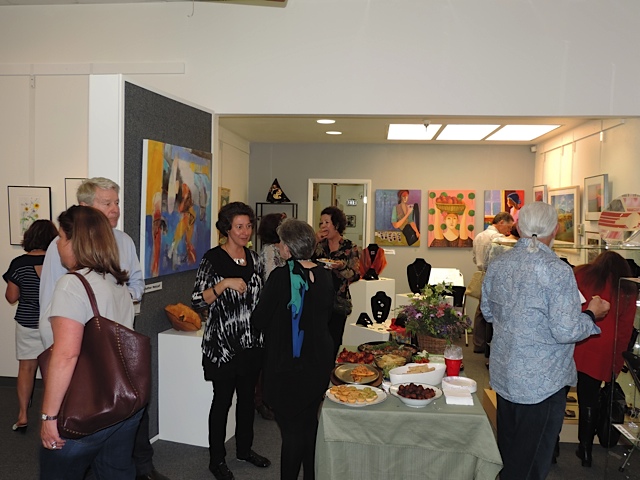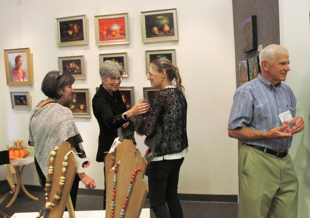 October 15 reception for “Unique Expressions in Color & Design”, featuring paintings of Irene Needoba, and jewelry of K de Groot, as well as the featured guest artist, Judy Feins. This show runs from August 31-Nov. 6.