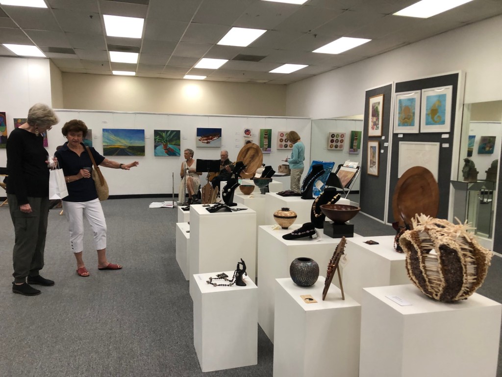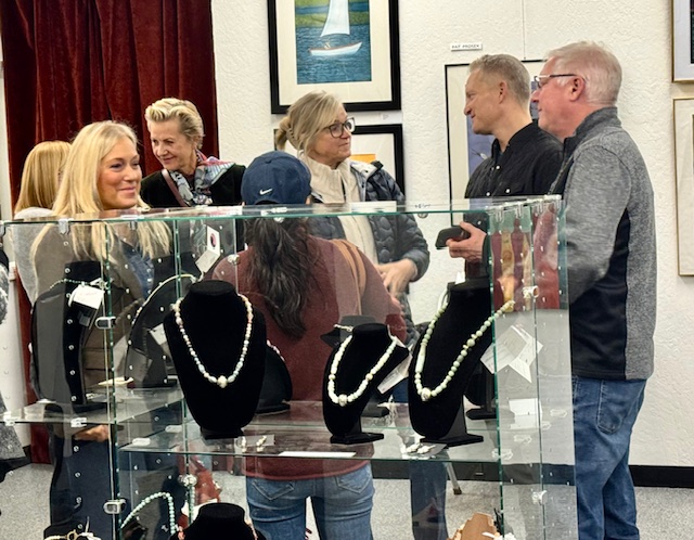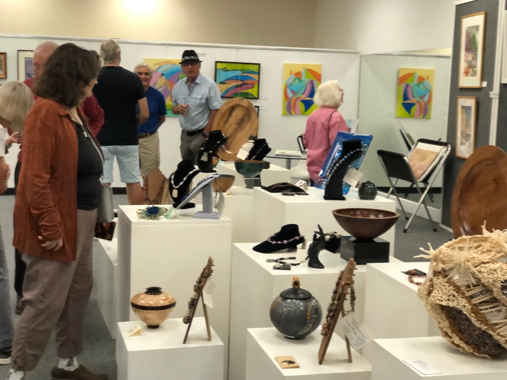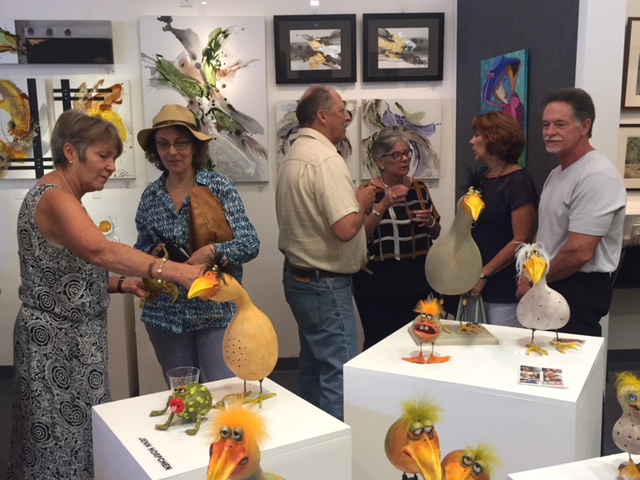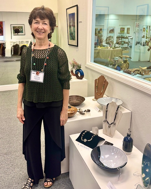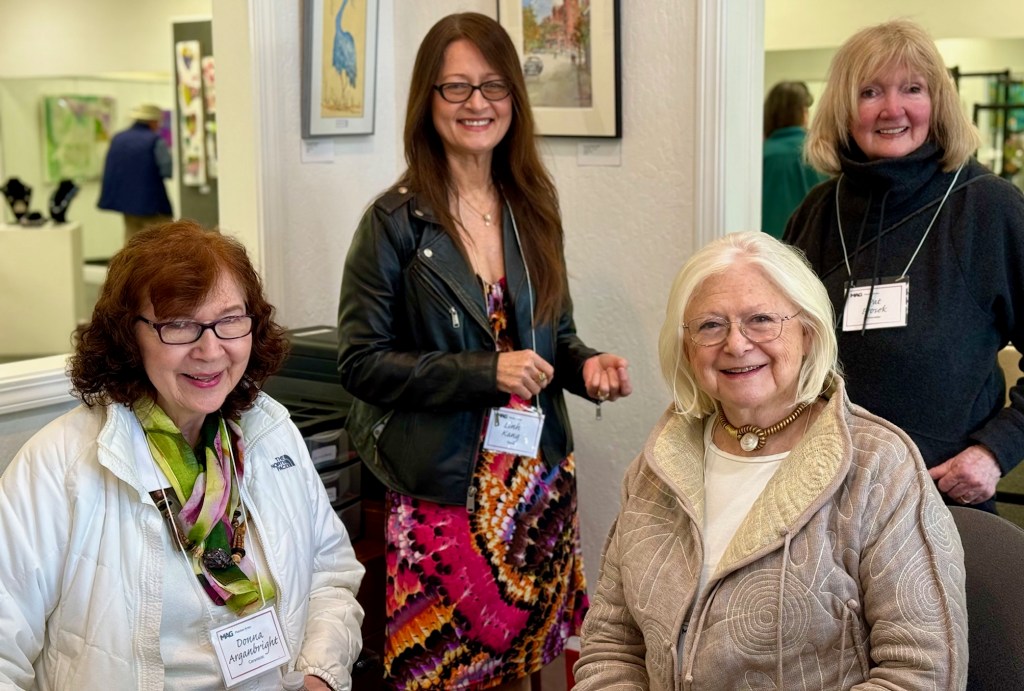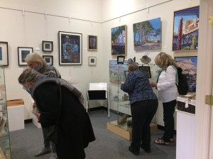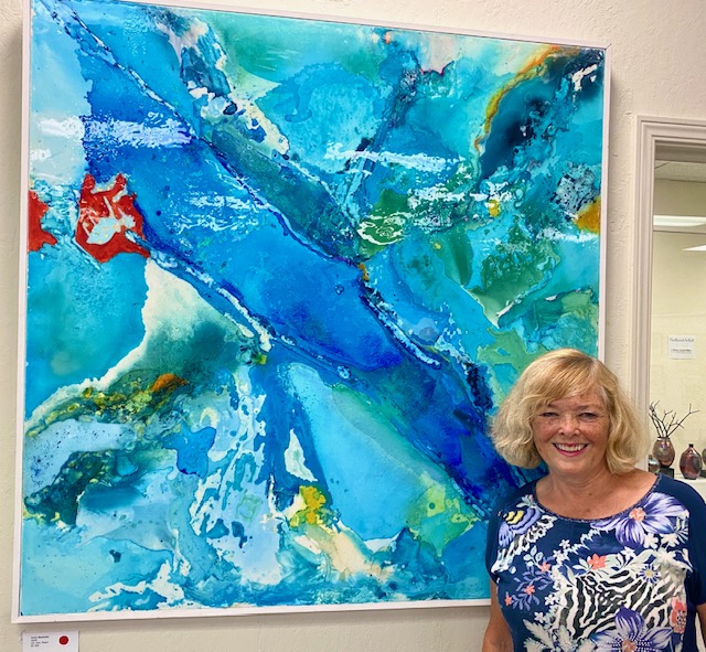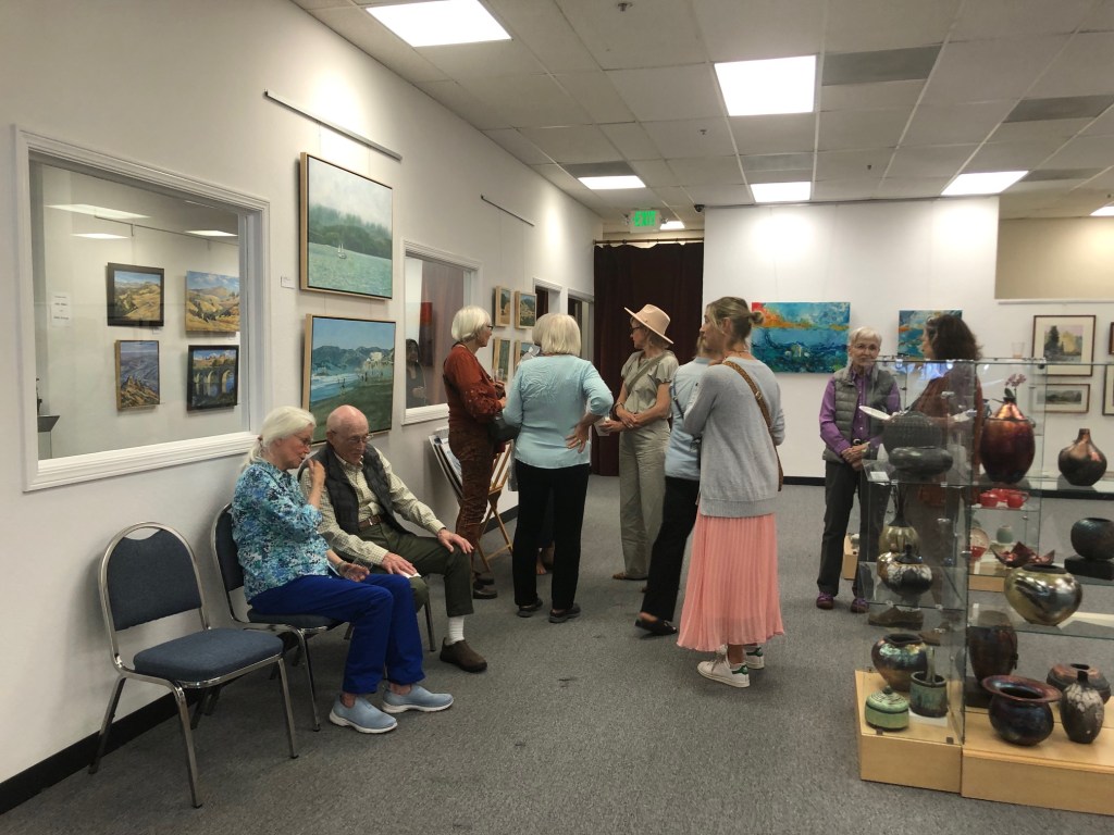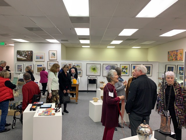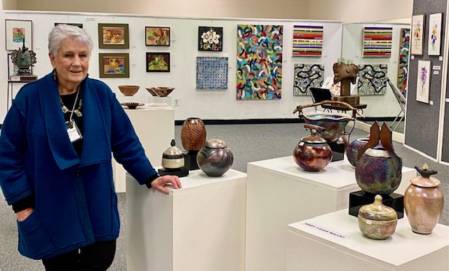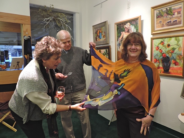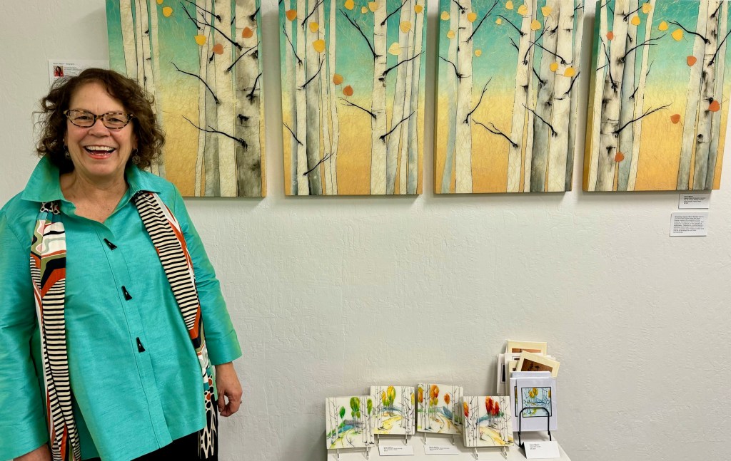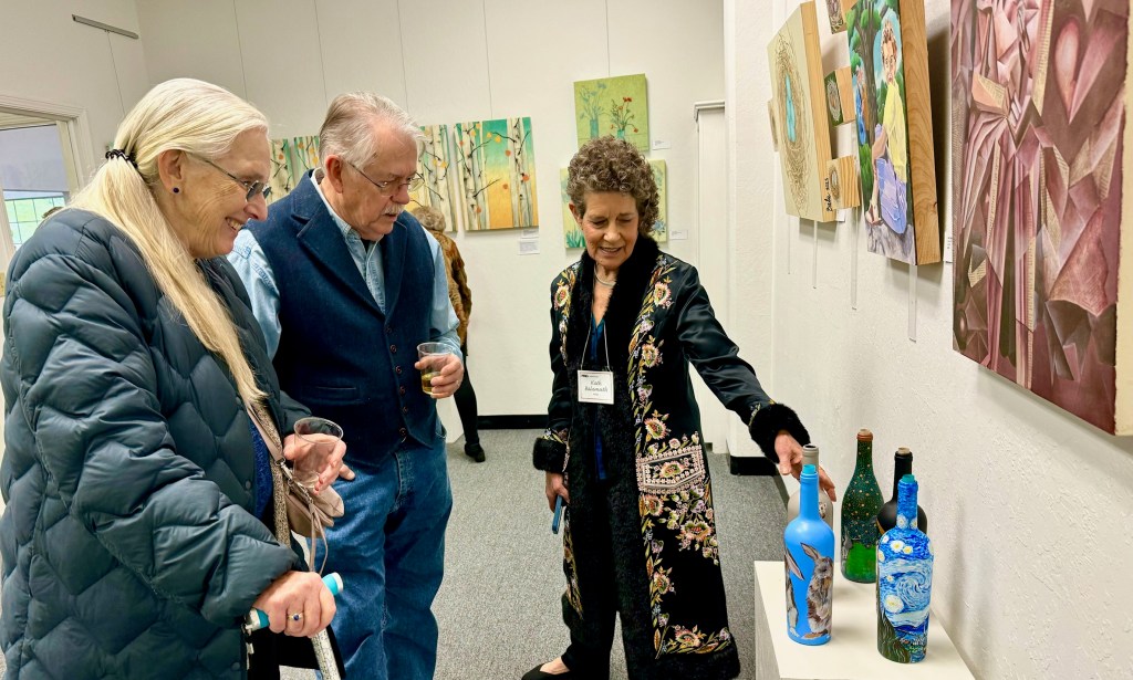October 15 reception for “Unique Expressions in Color & Design”, featuring paintings of Irene Needoba, and jewelry of K de Groot, as well as the featured guest artist, Judy Feins. This show runs from August 31-Nov. 6.