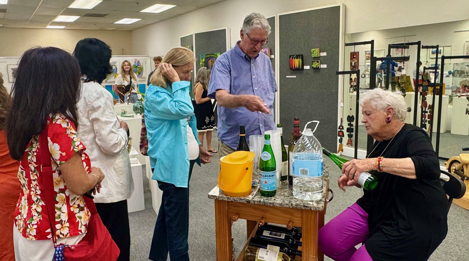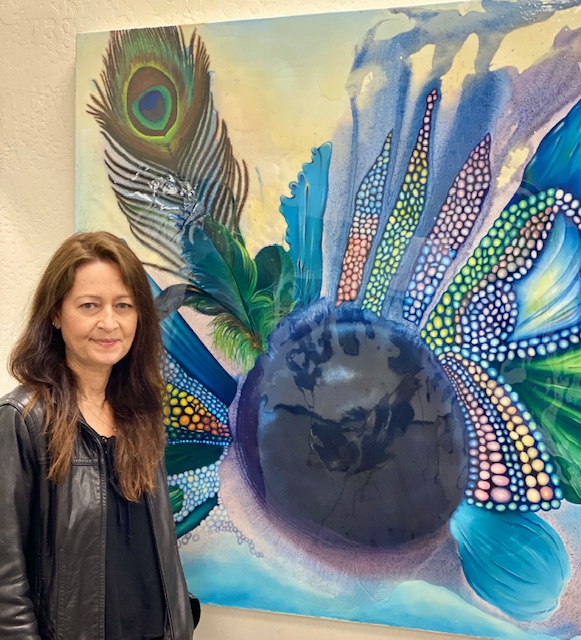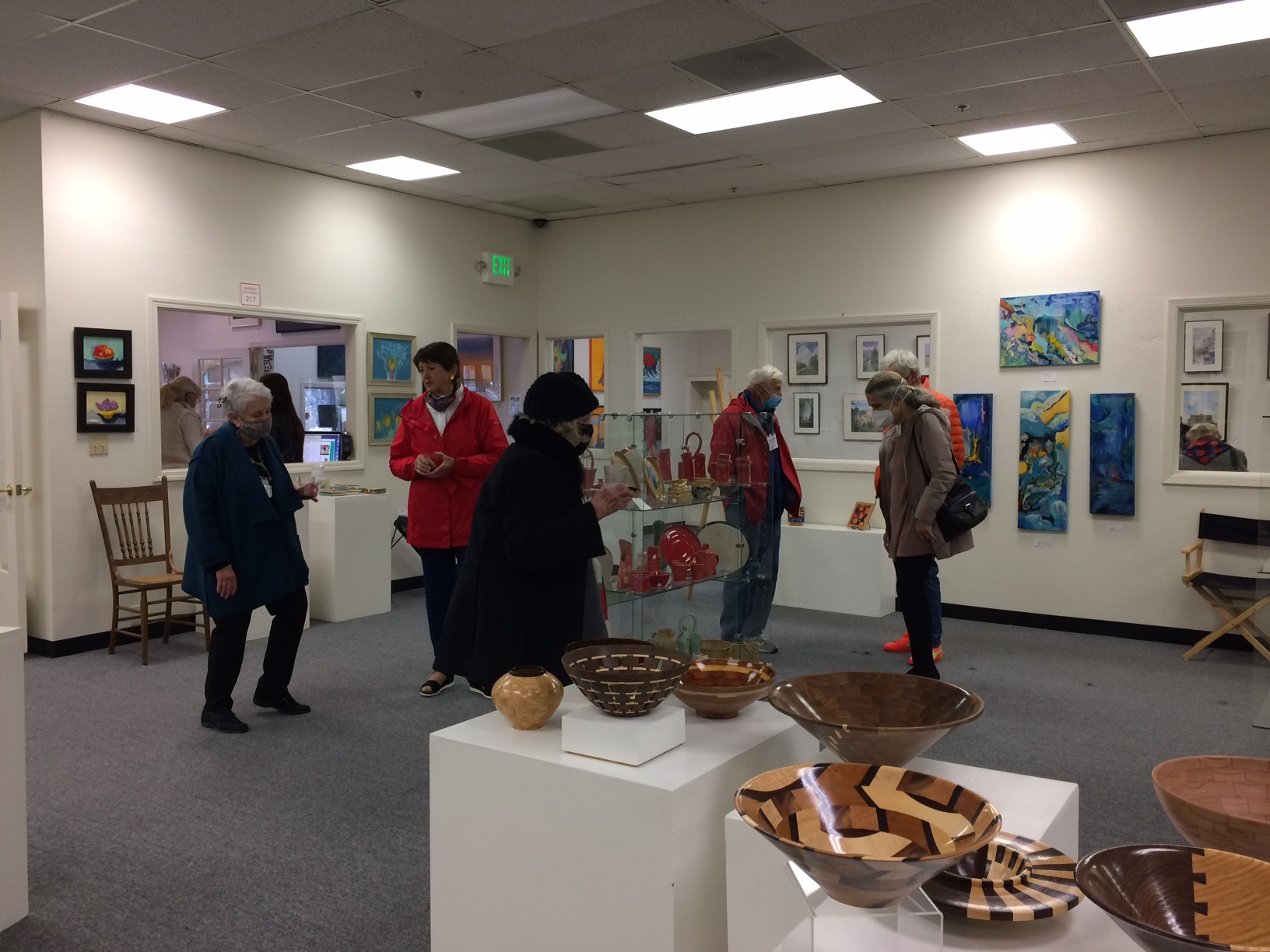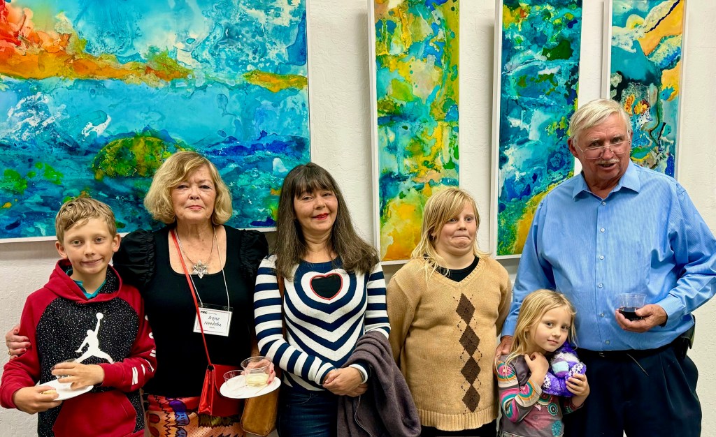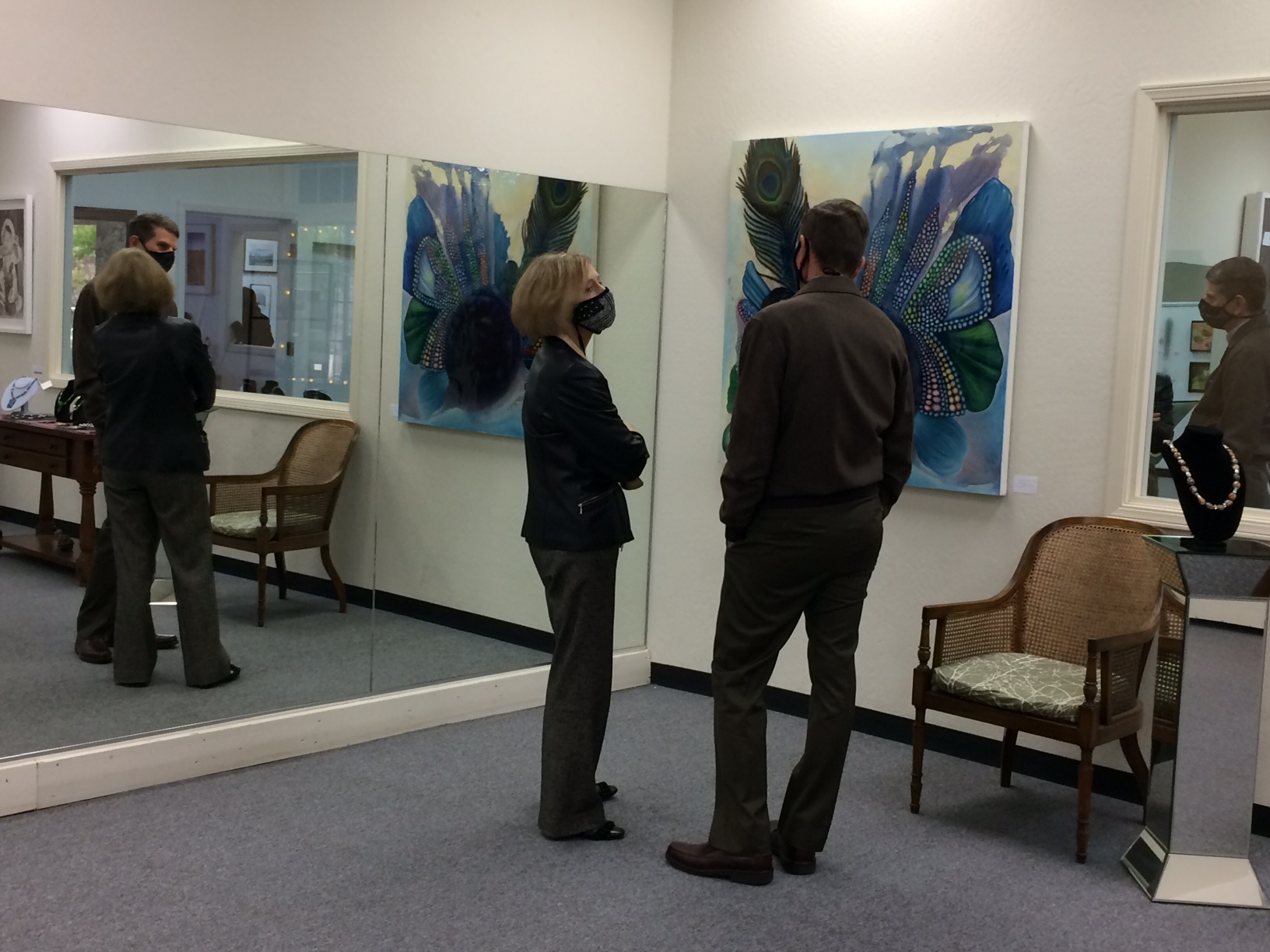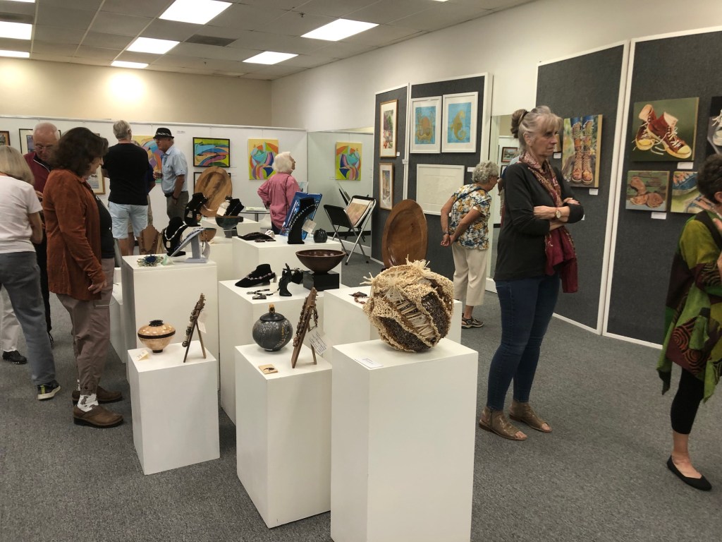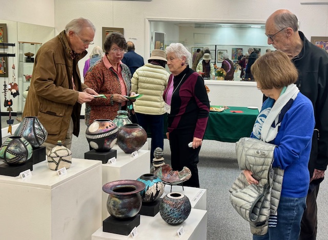 October 15 reception for “Unique Expressions in Color & Design”, featuring paintings of Irene Needoba, and jewelry of K de Groot, as well as the featured guest artist, Judy Feins. This show runs from August 31-Nov. 6.