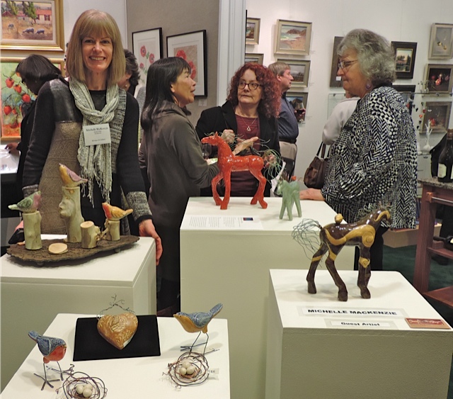 In the spirit of the season, the Moraga Art Gallery presents “Holiday Magic in Porcelain and Paint” a colorful show featuring the works of two of Lamorinda’s most celebrated artists: Lafayette’s Donna Arganbright and Orinda’s Maria SantoStefano. The show runs from October 24th to January 5th. Here are some photos of the reception, Saturday, Oct. 27.