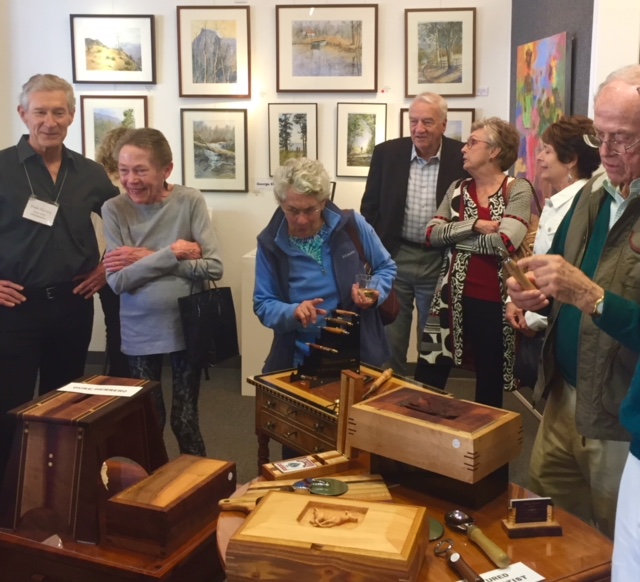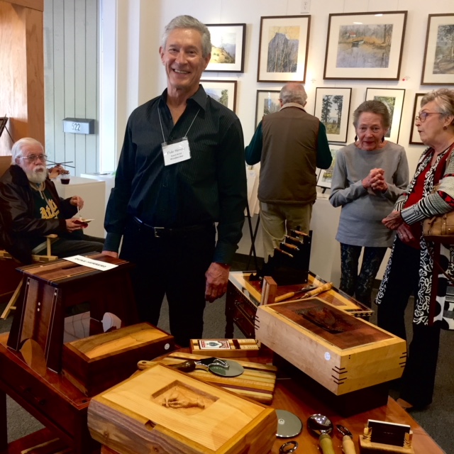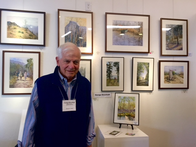 The Opening reception, for “Into the Wood(s)” on Saturday, March 23rd from 5:00 to 7:00 p.m. George Ehrenhaft, watercolors & Duke Herrero, woodworker are the honored guests. The public is invited to meet the artists, enjoy a glass of wine and light snacks accompanied by live music.