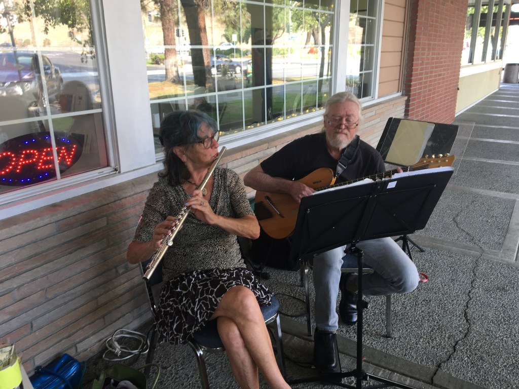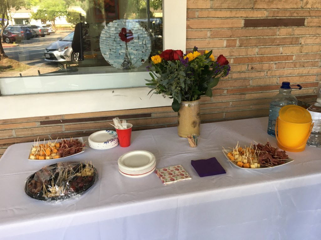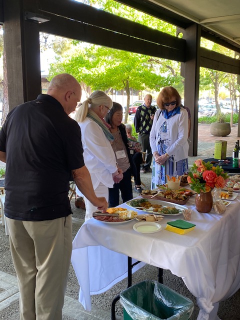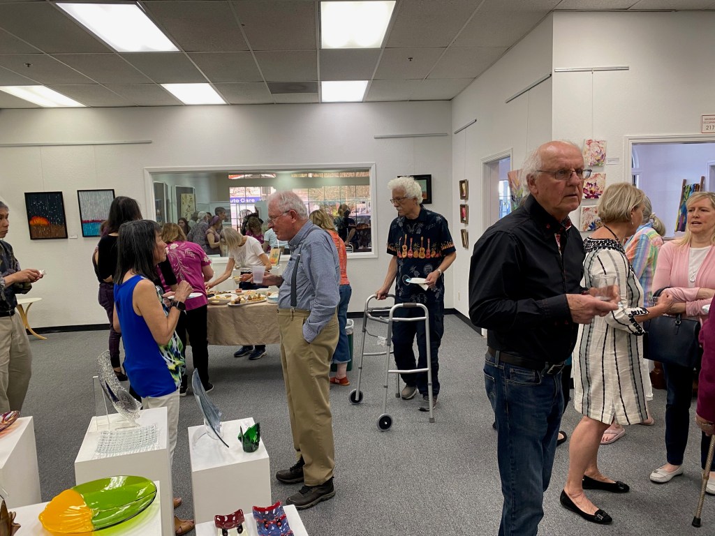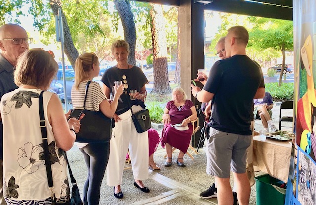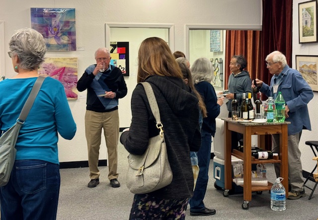 Early in 2020 Covid-19 put an end to receptions held in conjunction with the opening of each new show at the Moraga Art Gallery. To express their gratitude for community support since then, the gallery’s members invited the public to a special reception on Saturday, April 24th from 5:00 to 7:00 pm, which was held in the plaza in front of the gallery at 432 Center Street in Moraga’s Rheem Shopping Center.