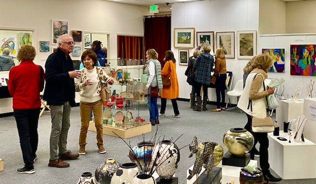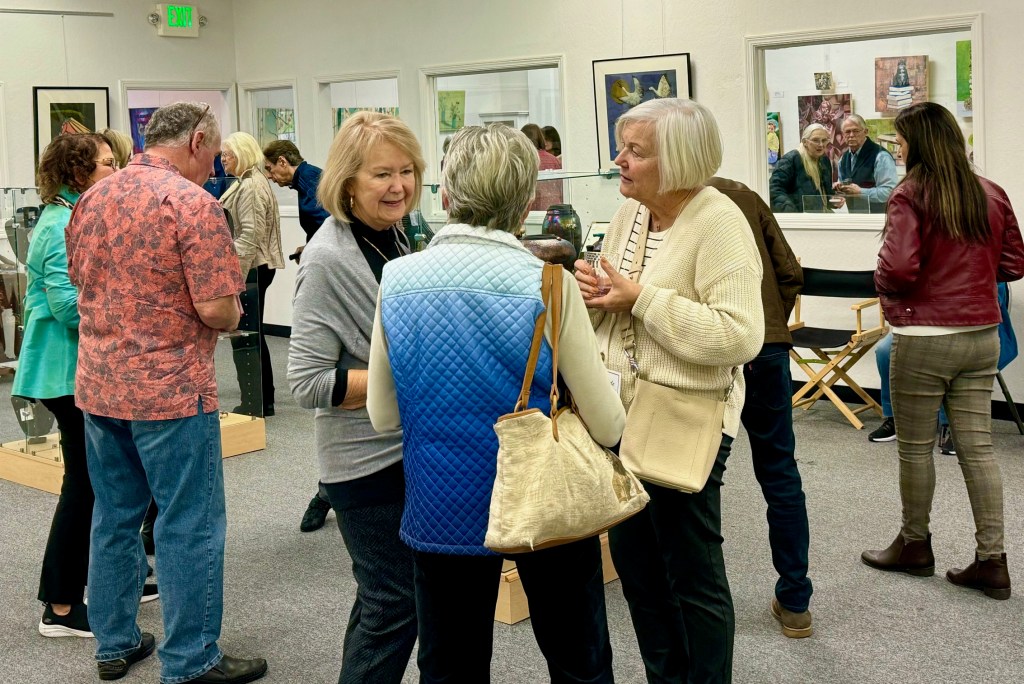 The well attended Moraga Art Gallery Reception celebrated the exhibition, Stories on Canvas, featuring the work of gallery members, Kath Balamuth and Jill Landau, and guest artist Karen Mason, on January 27, 2024 from 3-5pm.