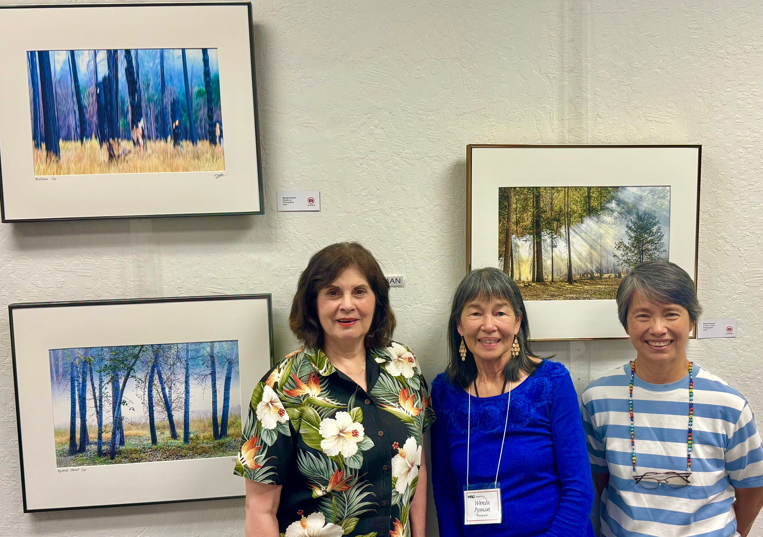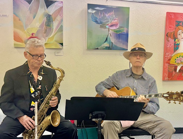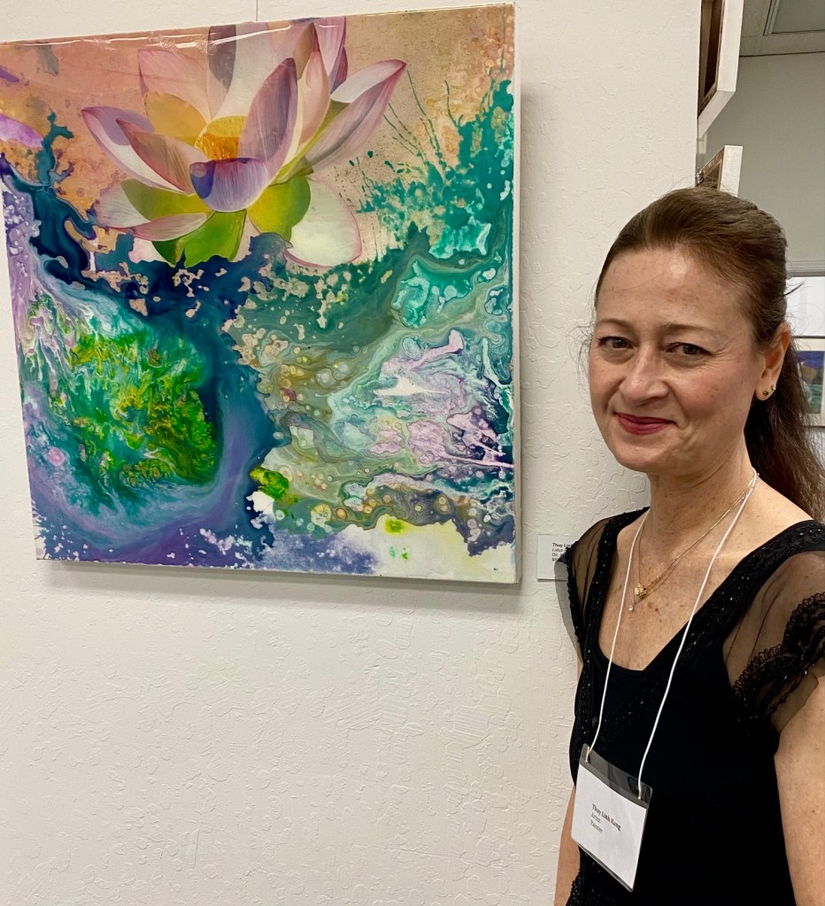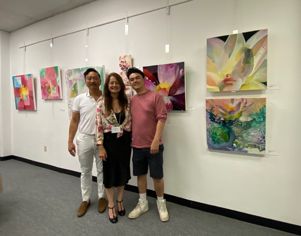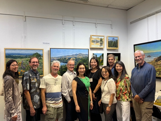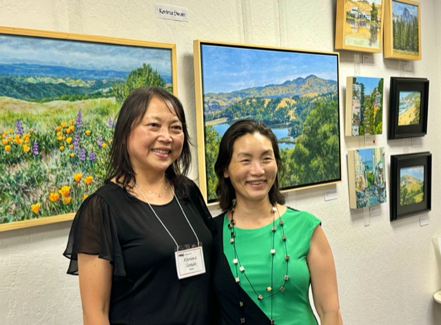 Moraga Art Gallery celebrated the opening of the exhibit, “Wonders of Man and Nature”, featuring the work of Linh Kang, painter and Wenda Pyman, photographer on August 19, 2023.
