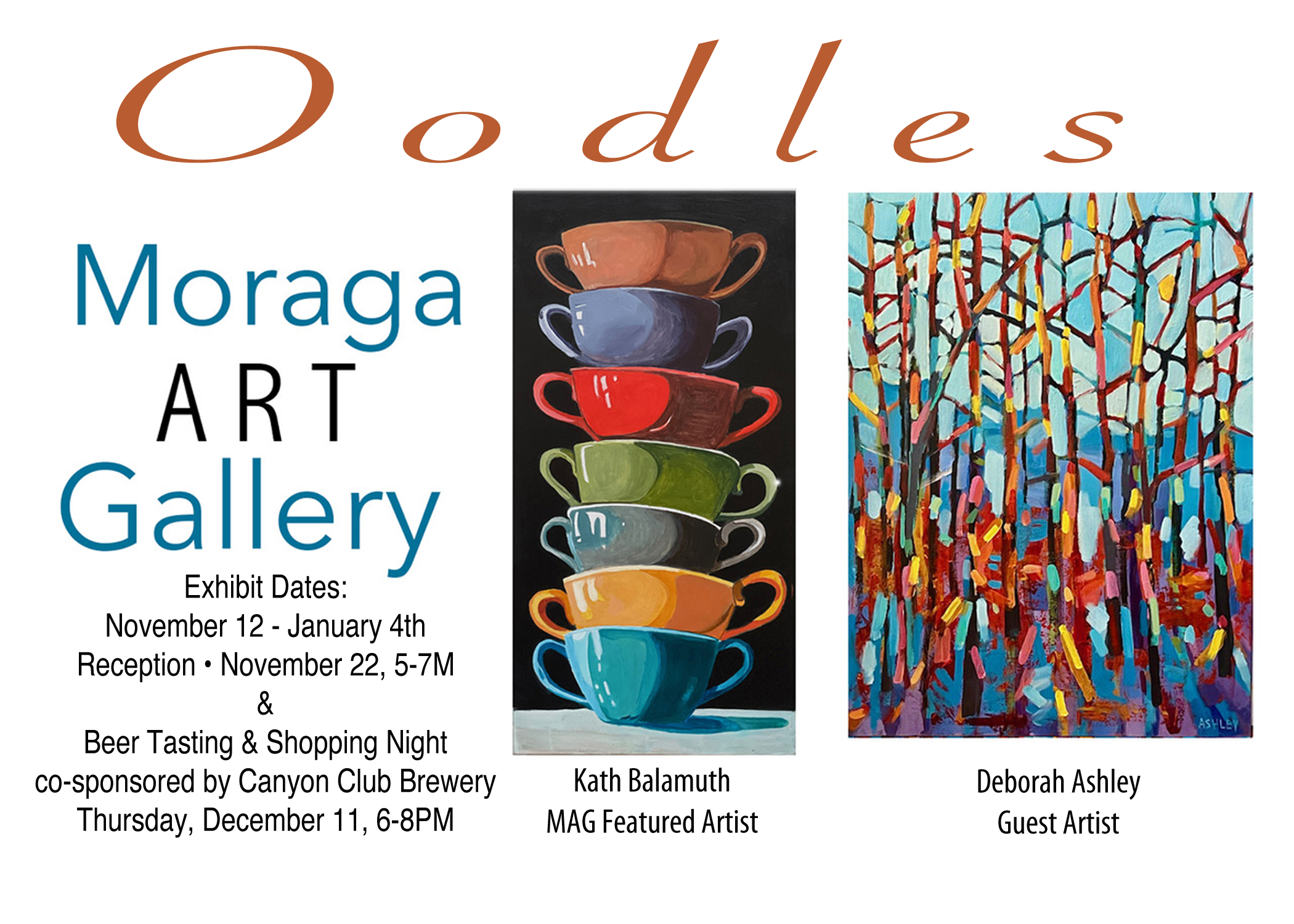 Saturday, November 22, 2025: Reception for the new show, “Oodles”, featuring member artist, Kath Balamuth and guest artist, Deborah Ashley.