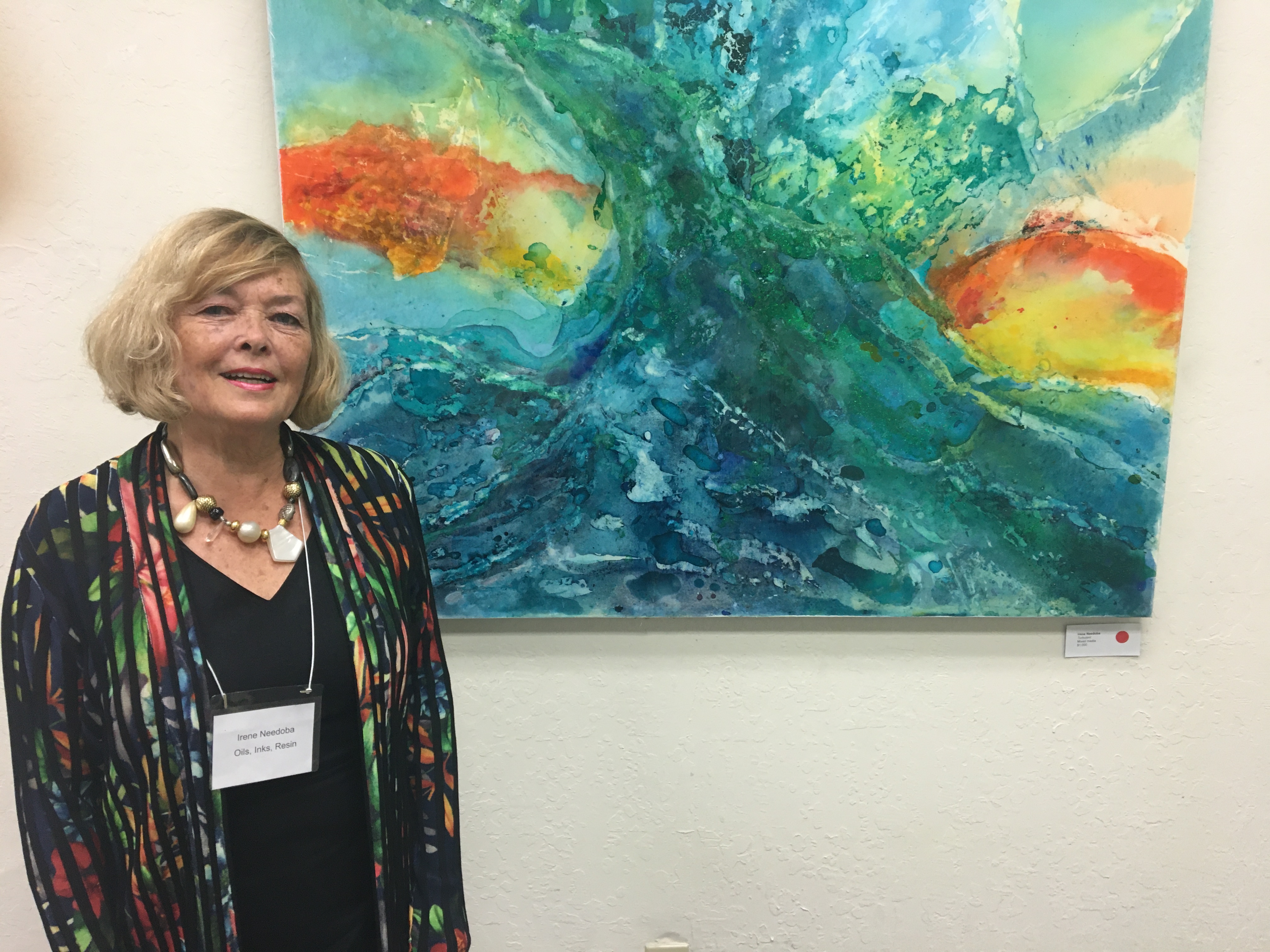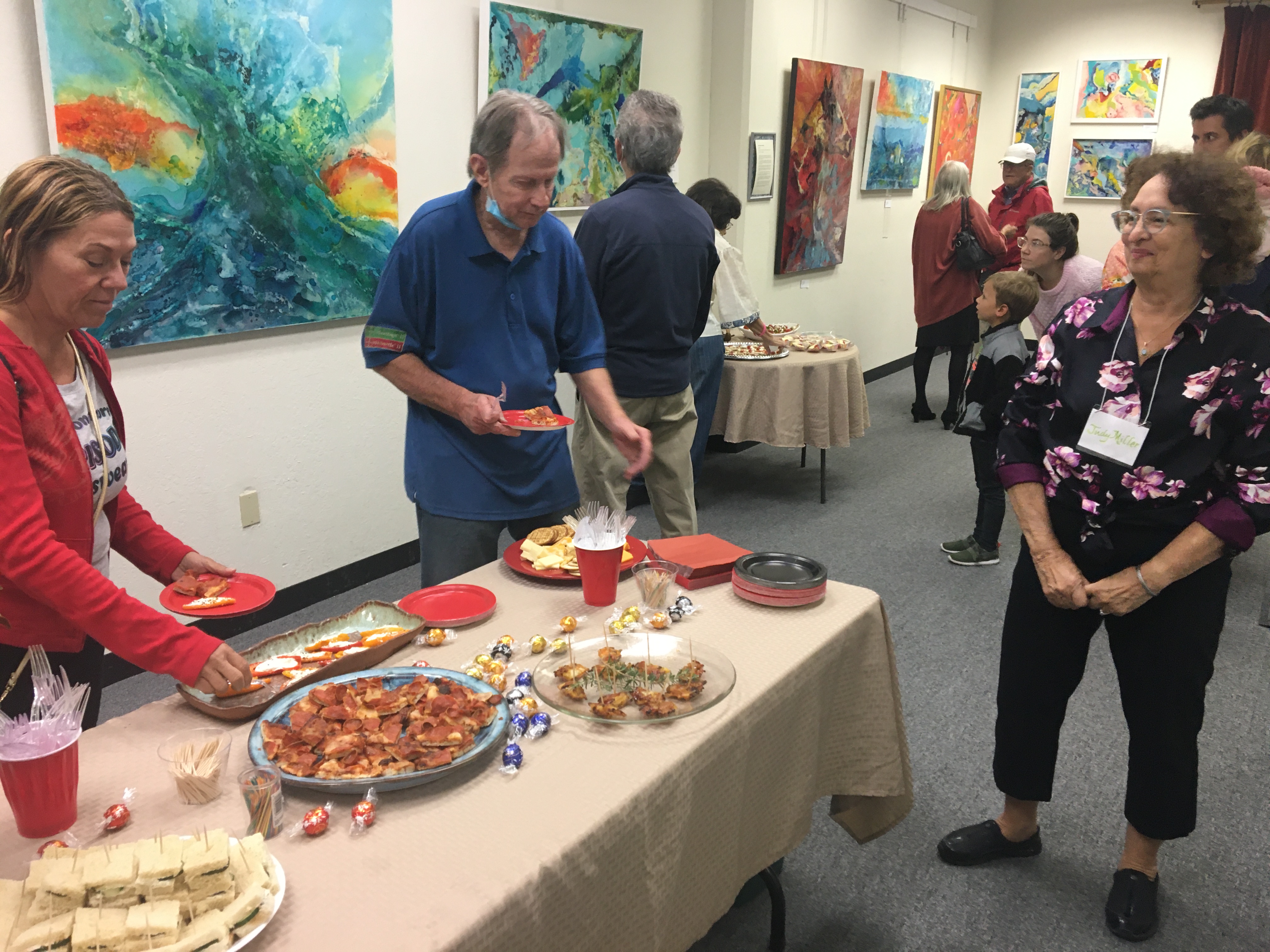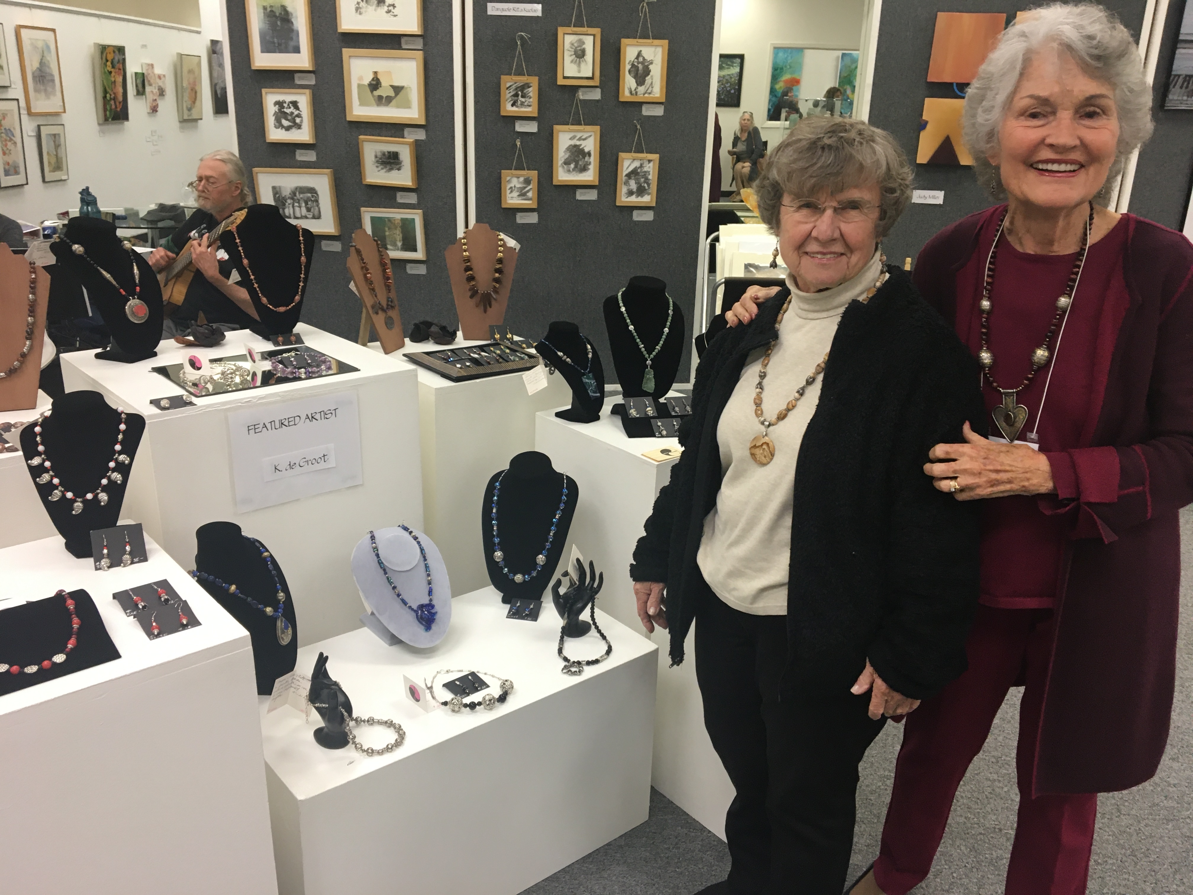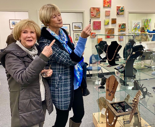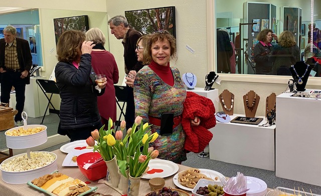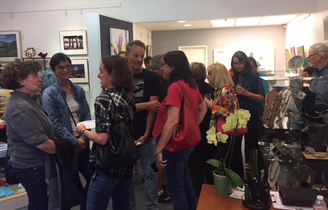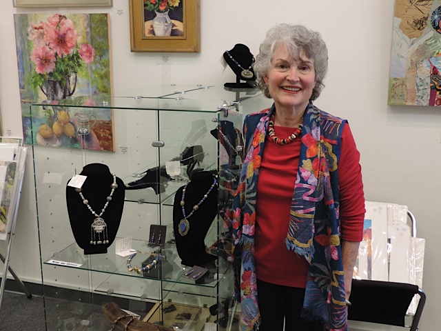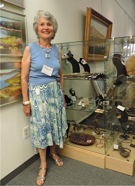 October 15 reception for “Unique Expressions in Color & Design”, featuring paintings of Irene Needoba, and jewelry of K de Groot, as well as the featured guest artist, Judy Feins. This show runs from August 31-Nov. 6.