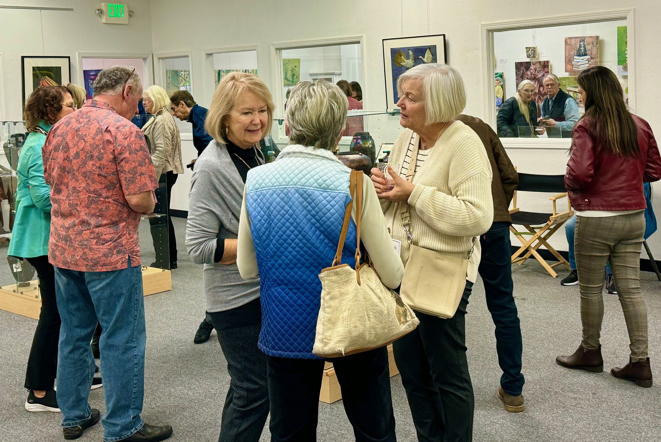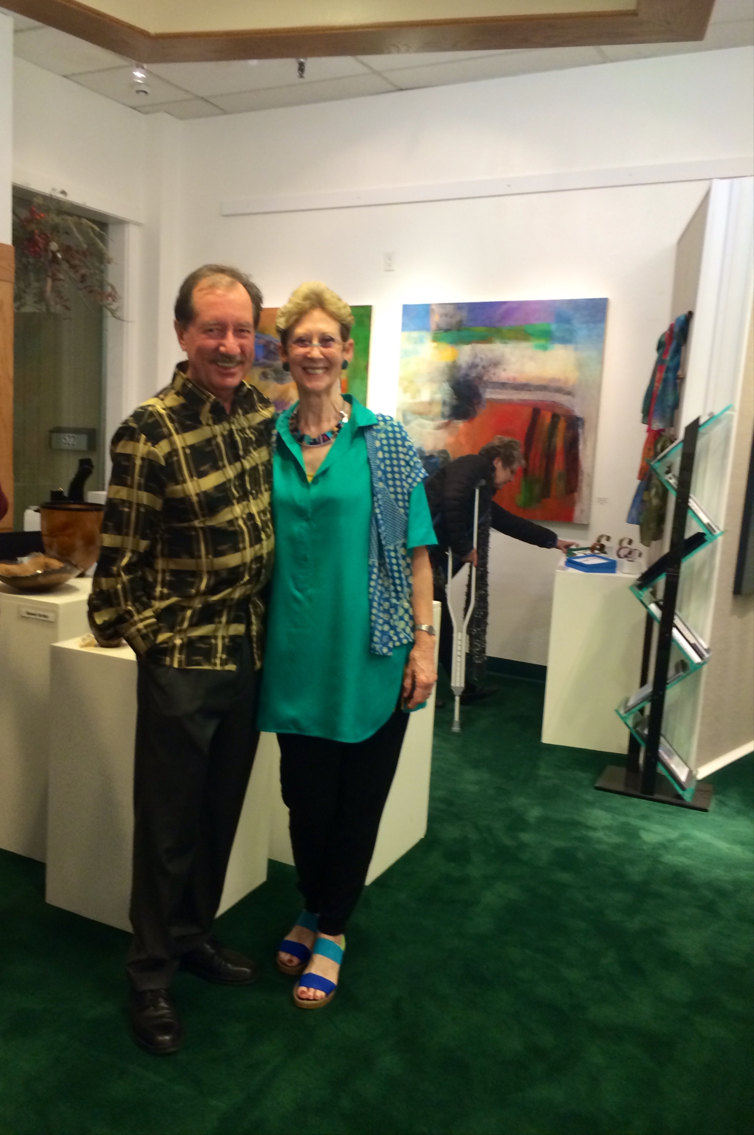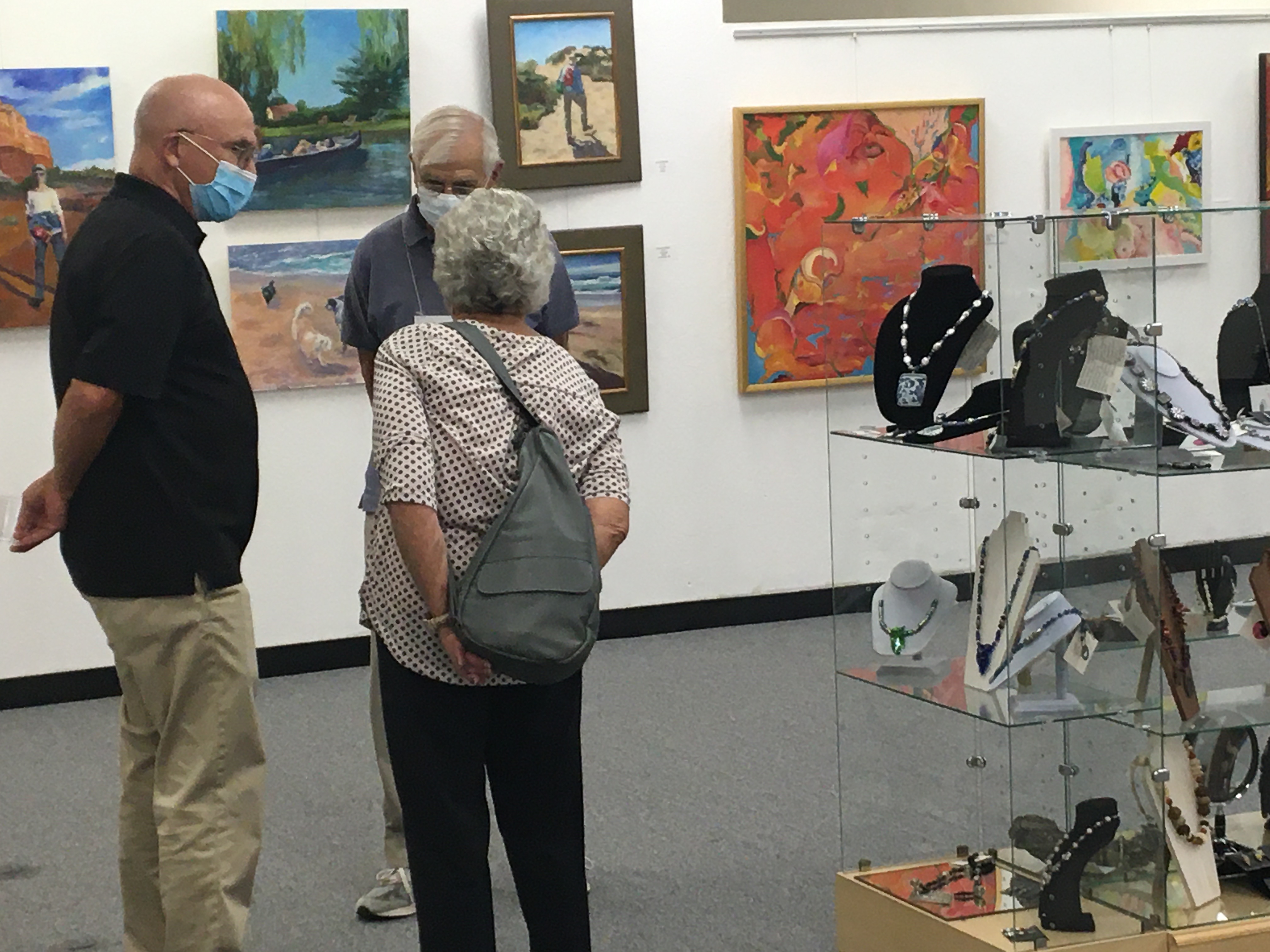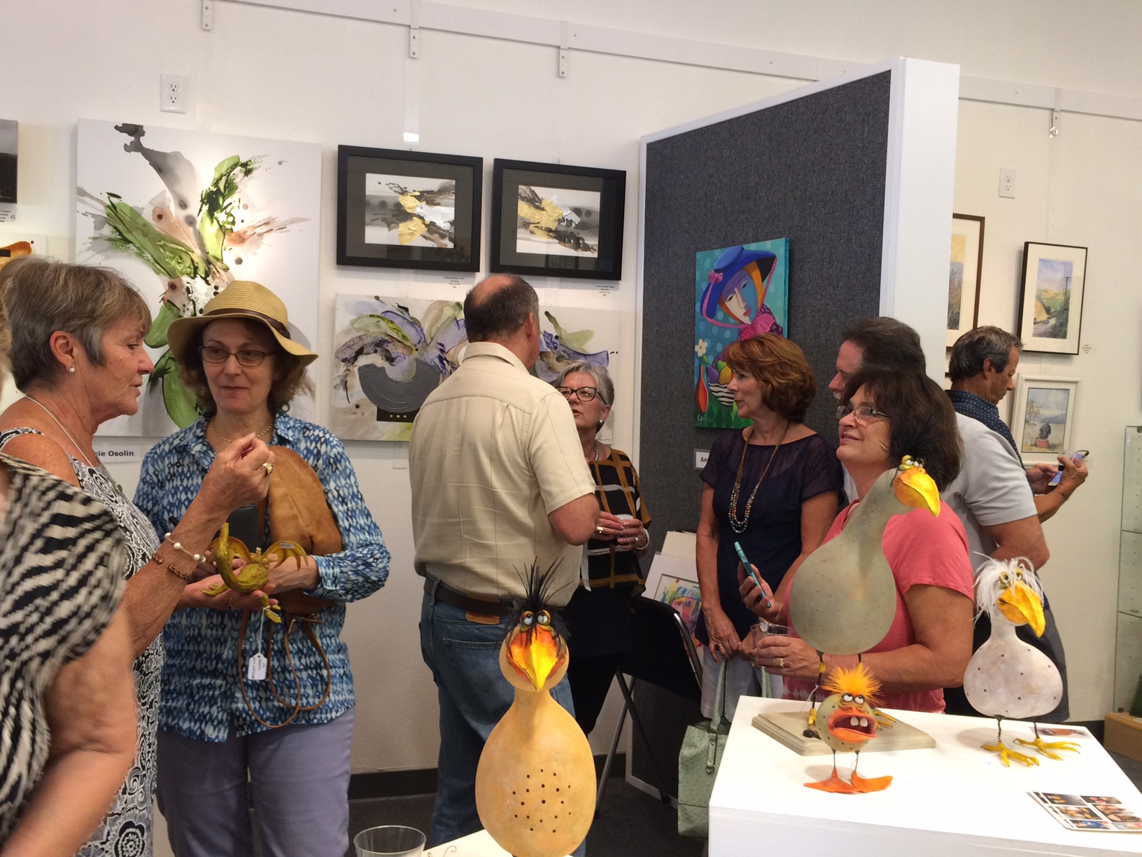 October 15 reception for “Unique Expressions in Color & Design”, featuring paintings of Irene Needoba, and jewelry of K de Groot, as well as the featured guest artist, Judy Feins. This show runs from August 31-Nov. 6.