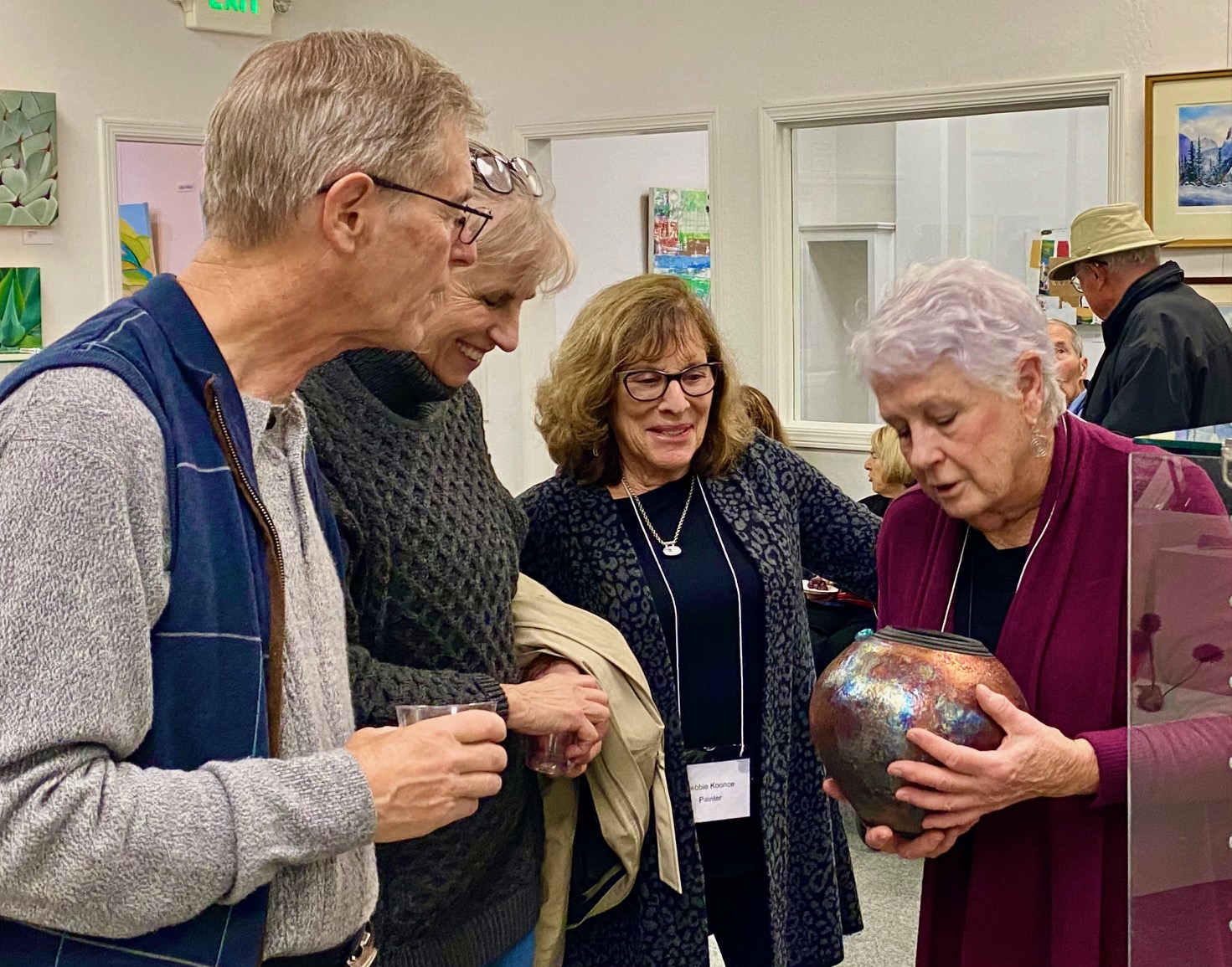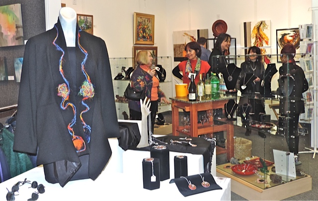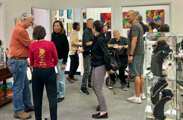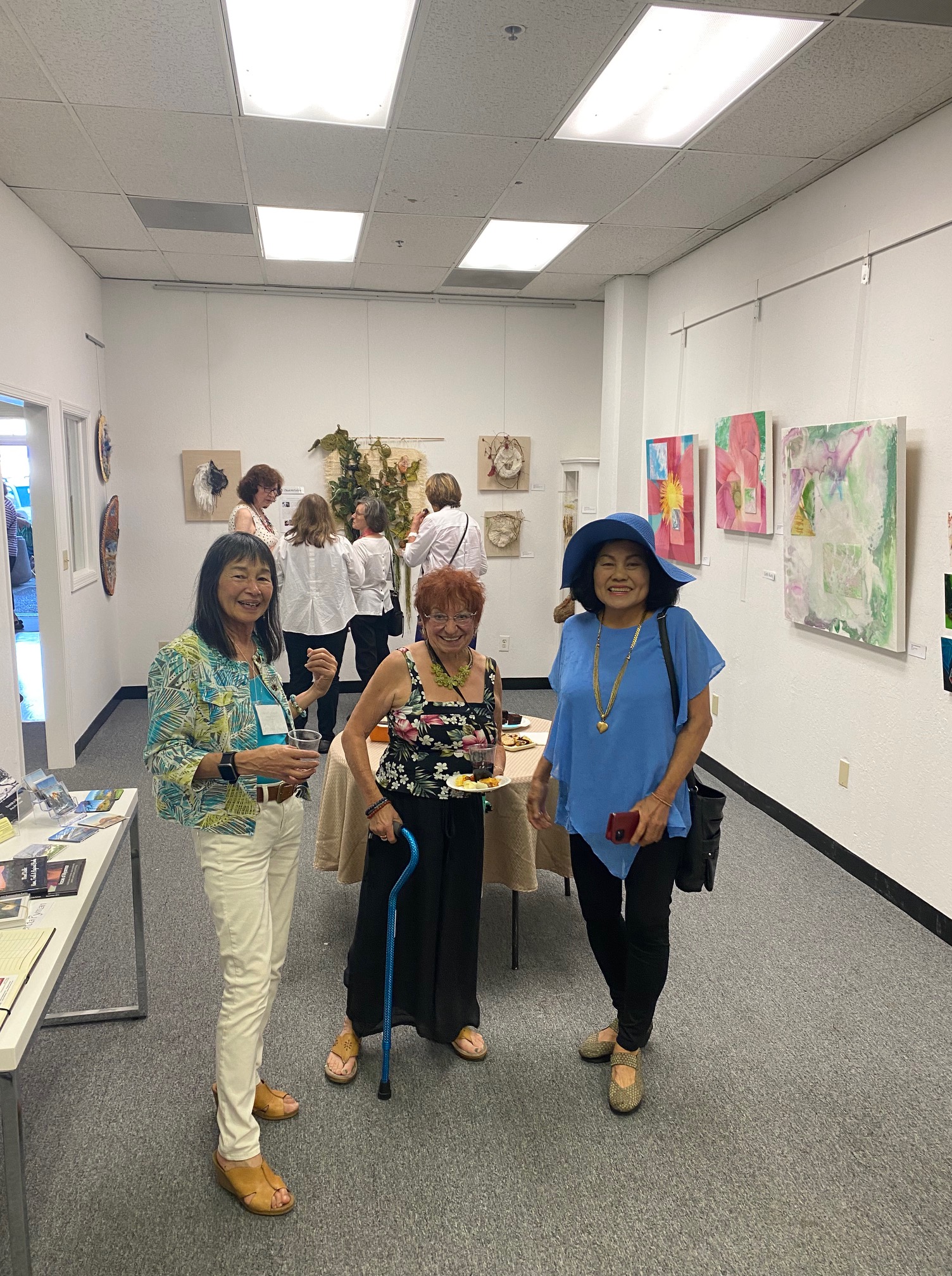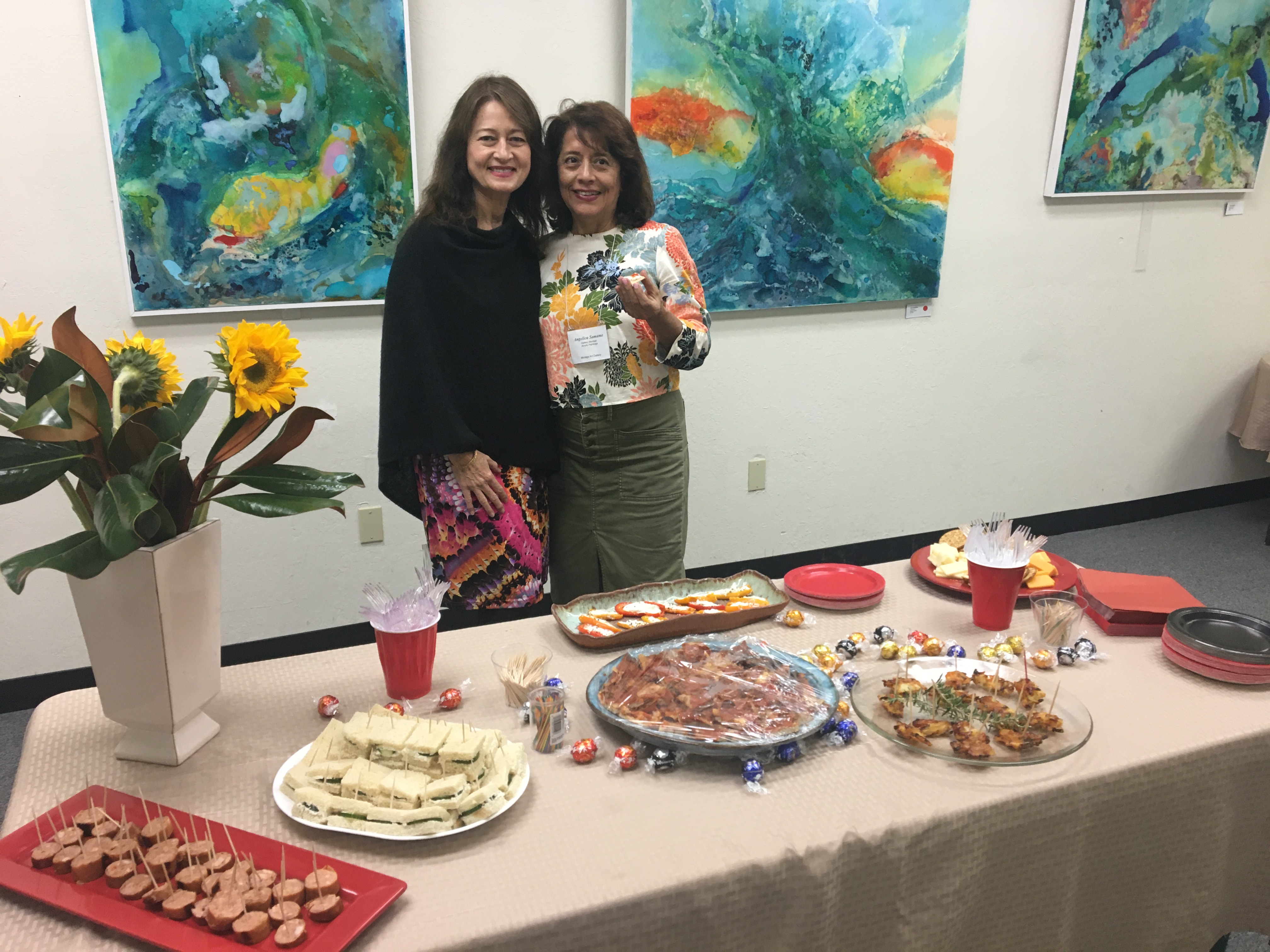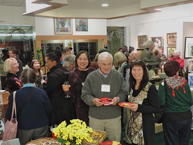 October 15 reception for “Unique Expressions in Color & Design”, featuring paintings of Irene Needoba, and jewelry of K de Groot, as well as the featured guest artist, Judy Feins. This show runs from August 31-Nov. 6.