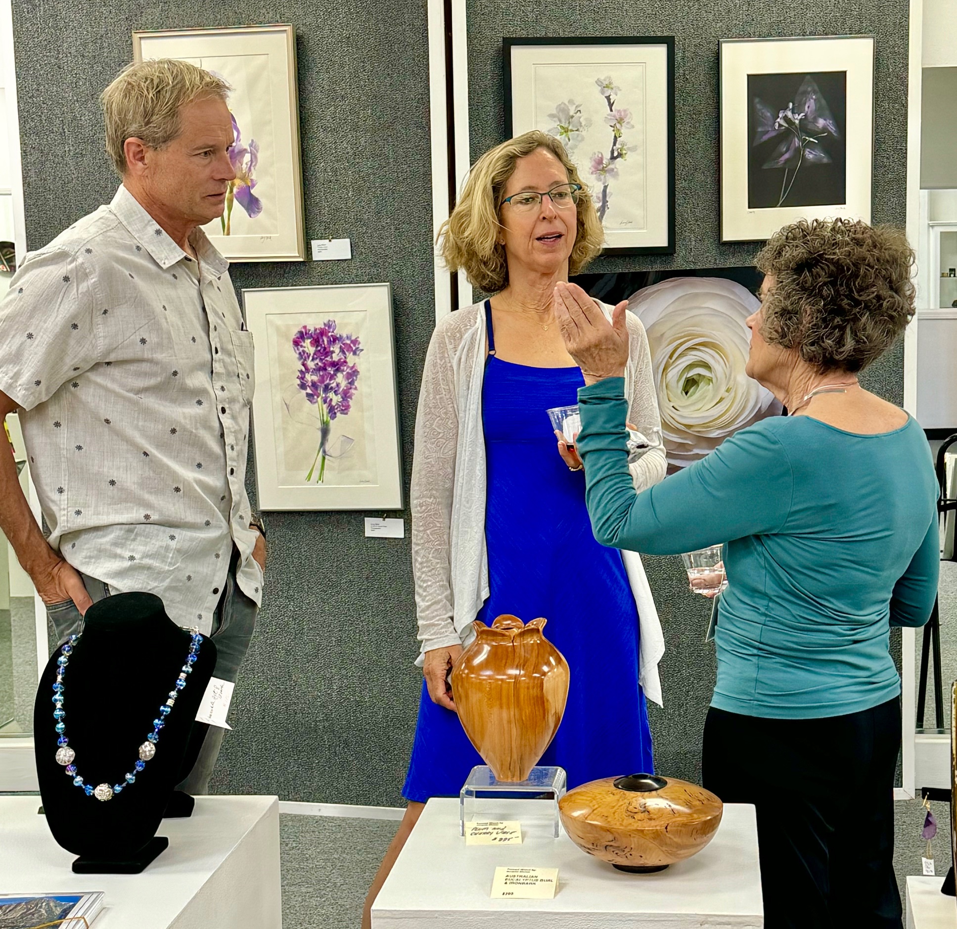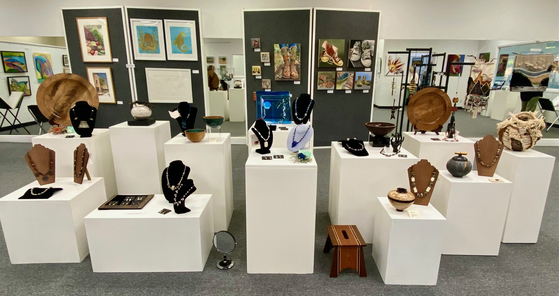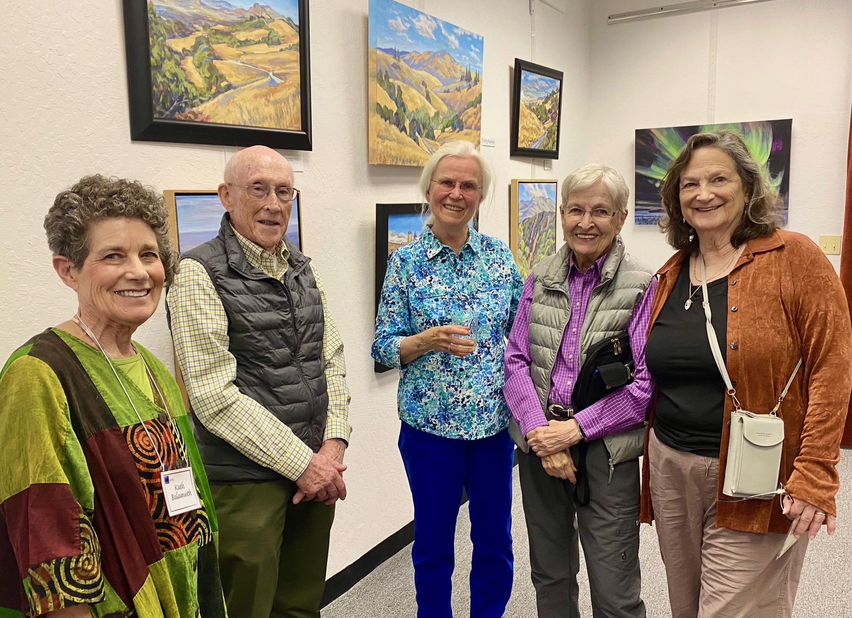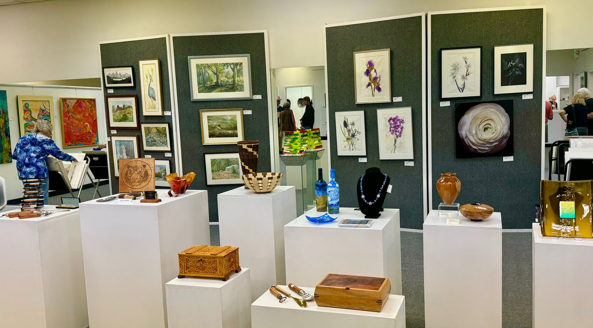 October 15 reception for “Unique Expressions in Color & Design”, featuring paintings of Irene Needoba, and jewelry of K de Groot, as well as the featured guest artist, Judy Feins. This show runs from August 31-Nov. 6.