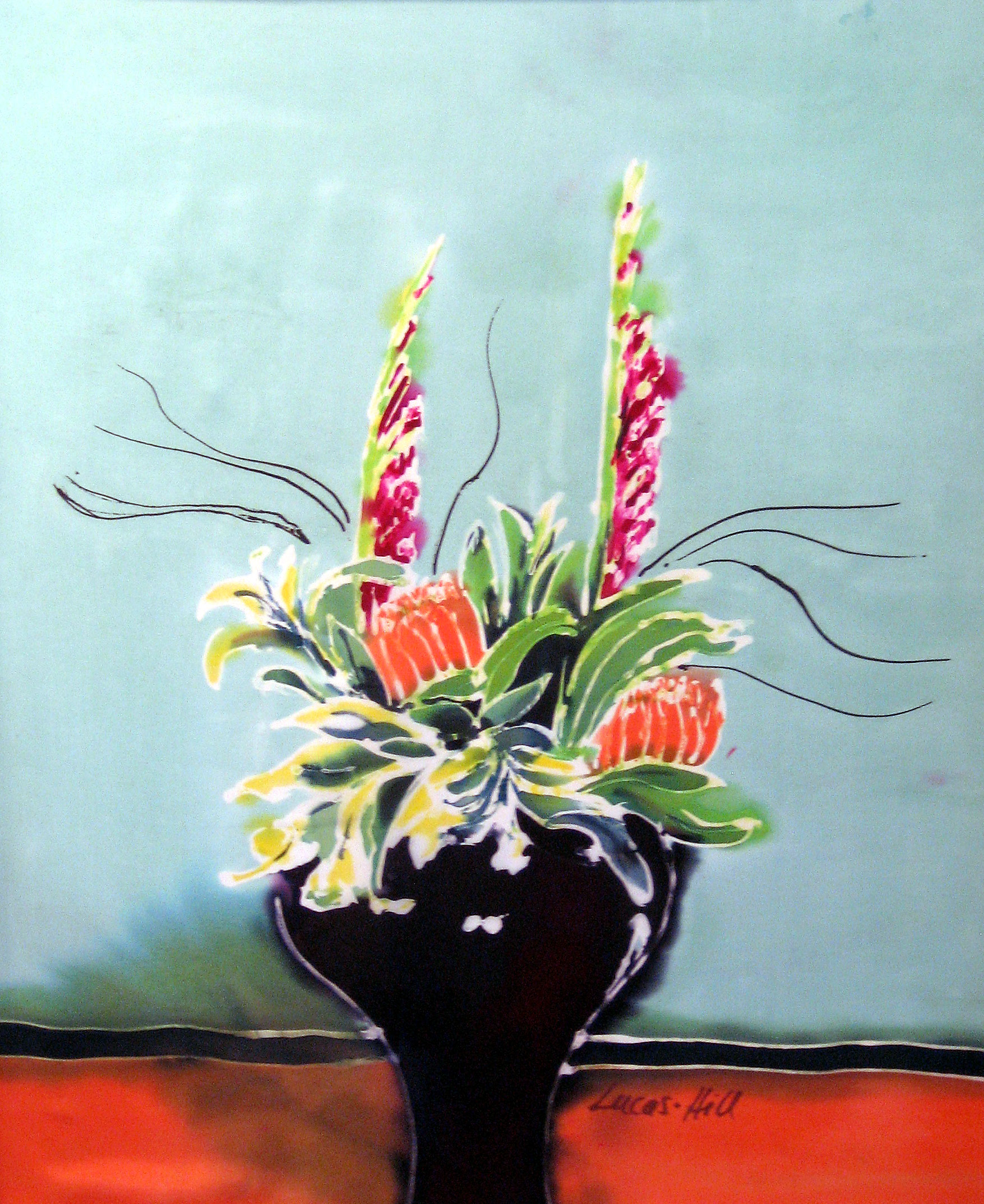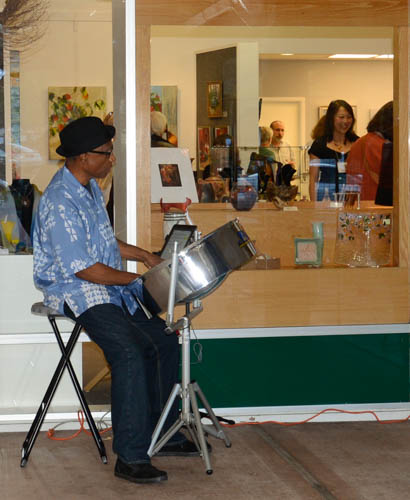The well attended Opening Reception, Saturday, June 8 for “Vistas and Hues”, featured acrylic painter Angelica Samame and oil painter, Kerima Swain, as well as guest artist, abstract painter Irenka Kudlicki. Accompanied with Carribean music on steel drums by Harry Best.