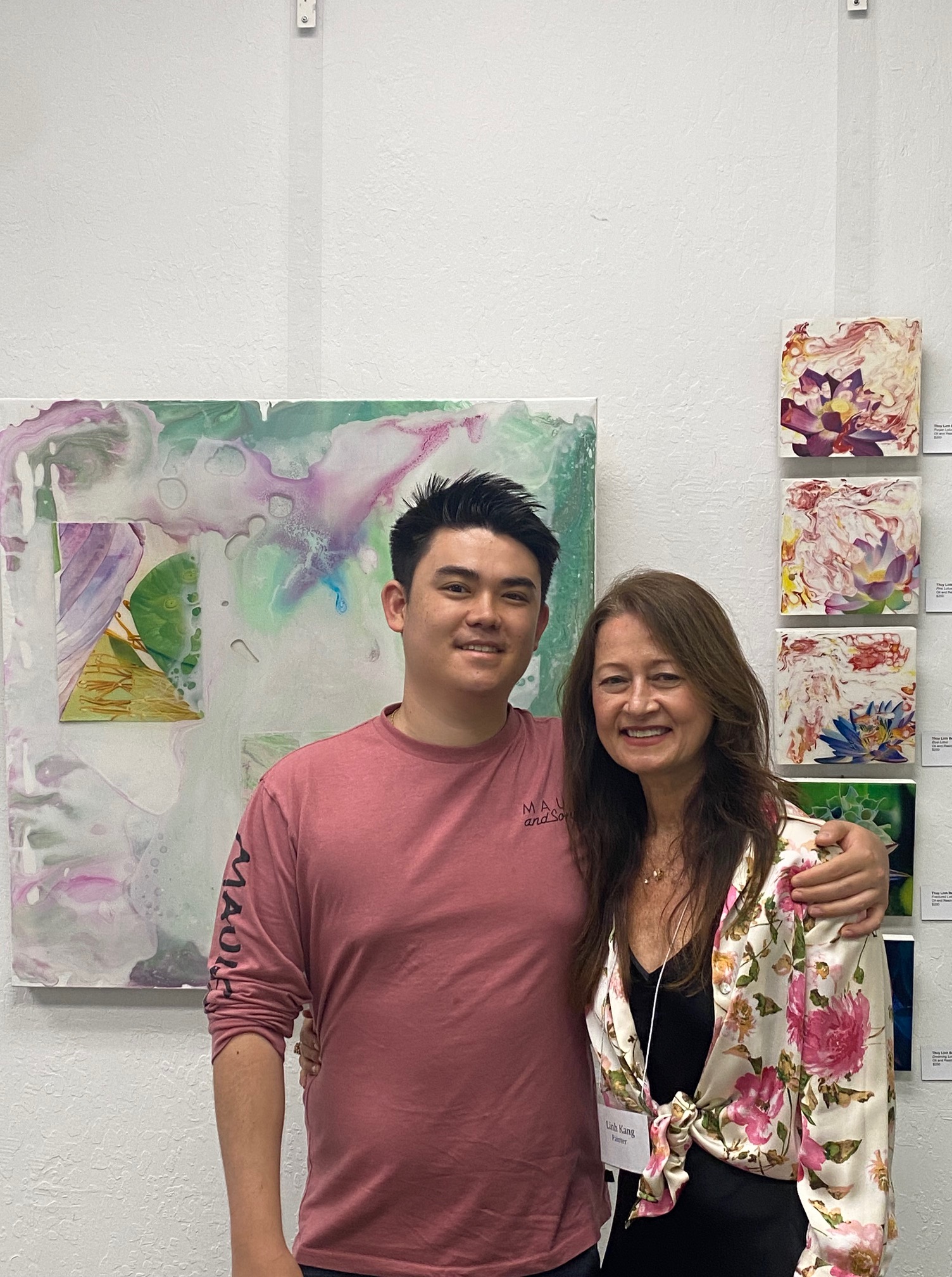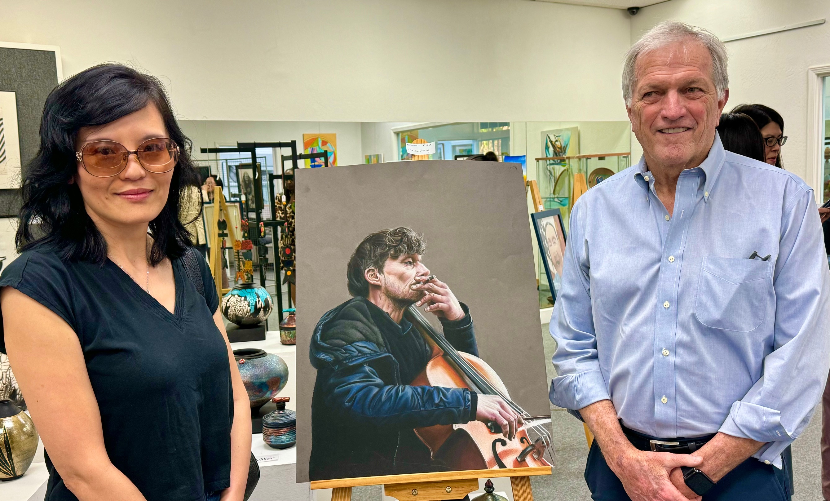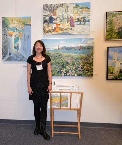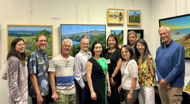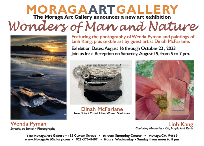 Moraga Art Gallery celebrated the opening of the exhibit, “Wonders of Man and Nature”, featuring the work of Linh Kang, painter and Wenda Pyman, photographer on August 19, 2023.