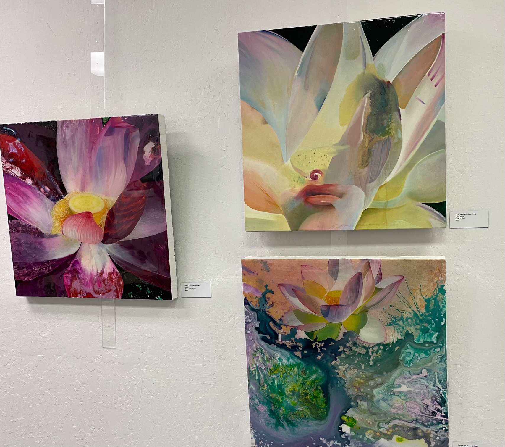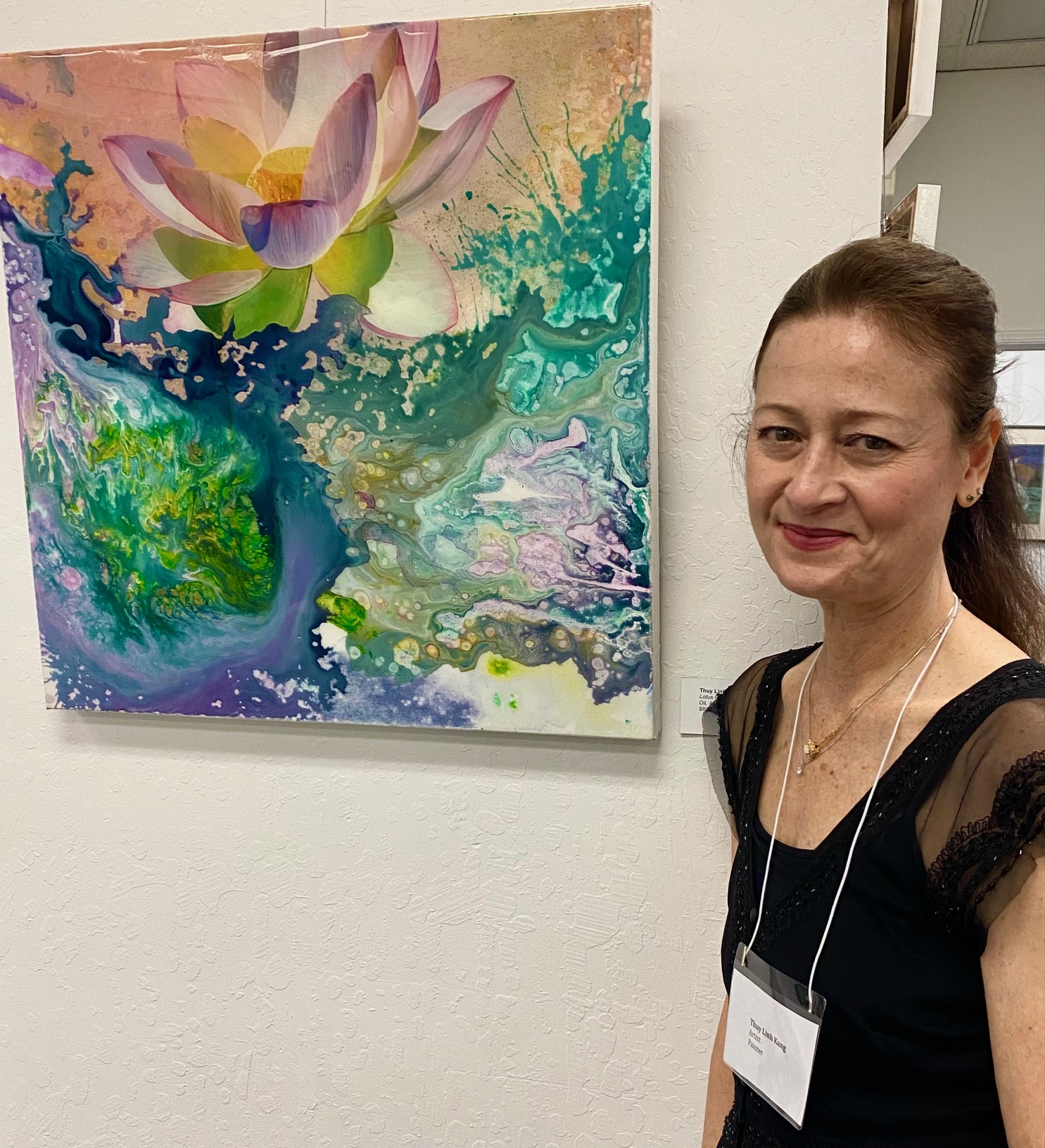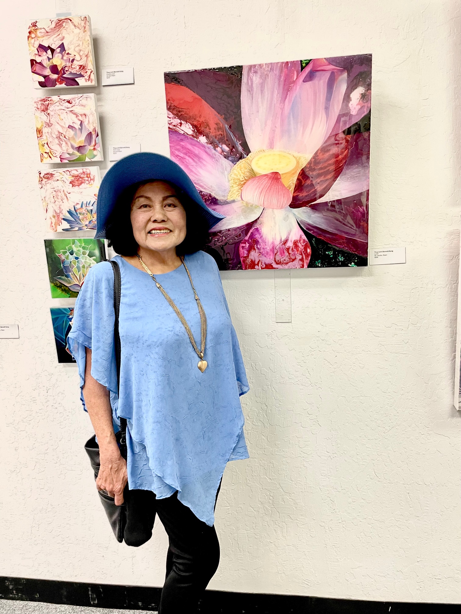 Moraga Art Gallery celebrated the opening of the exhibit, “Wonders of Man and Nature”, featuring the work of Linh Kang, painter and Wenda Pyman, photographer on August 19, 2023.