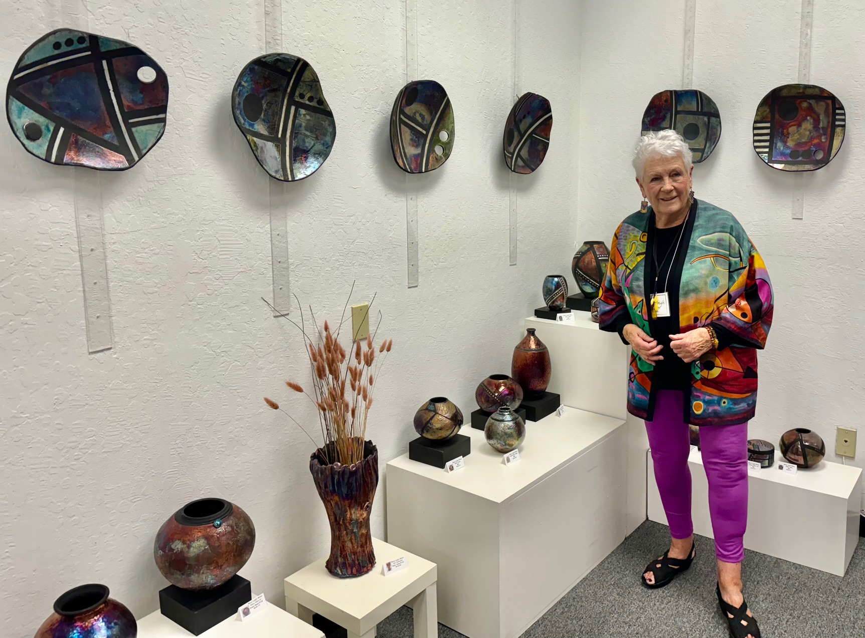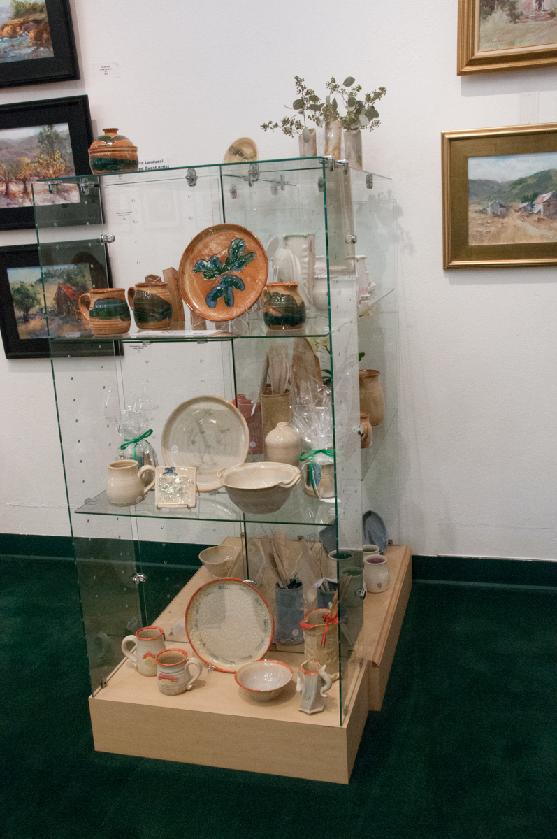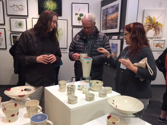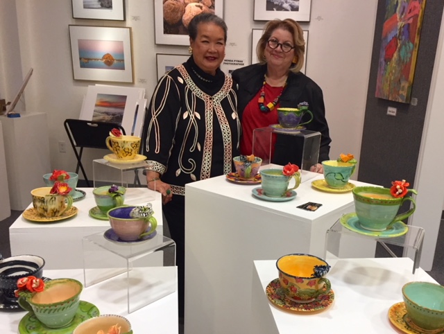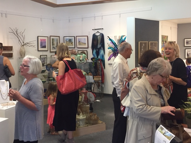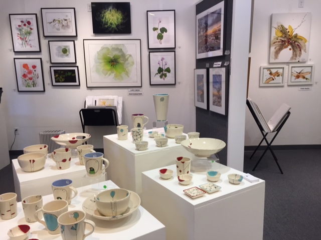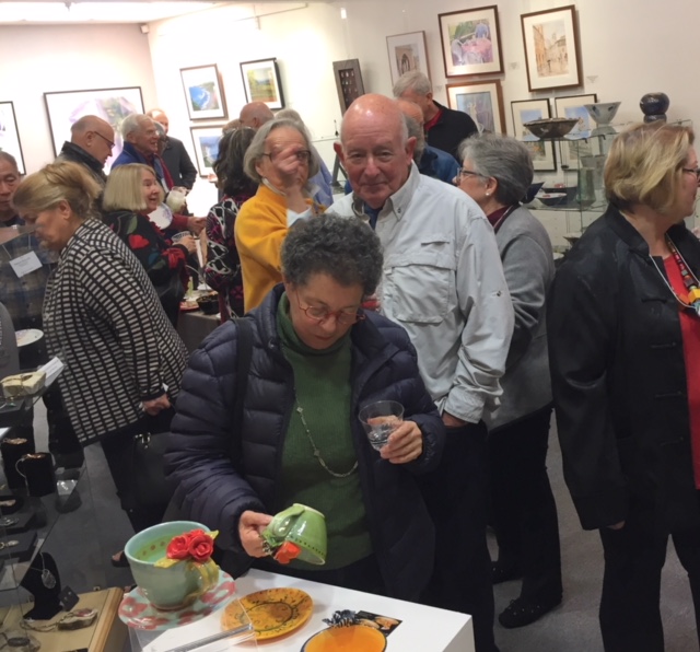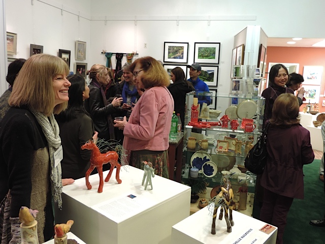 Opening Reception for “Color, Clay & Fire” featuring fine ceramics by Jacqueline Proulx and paintings by Marge Barta Atkins. August 29, 2015