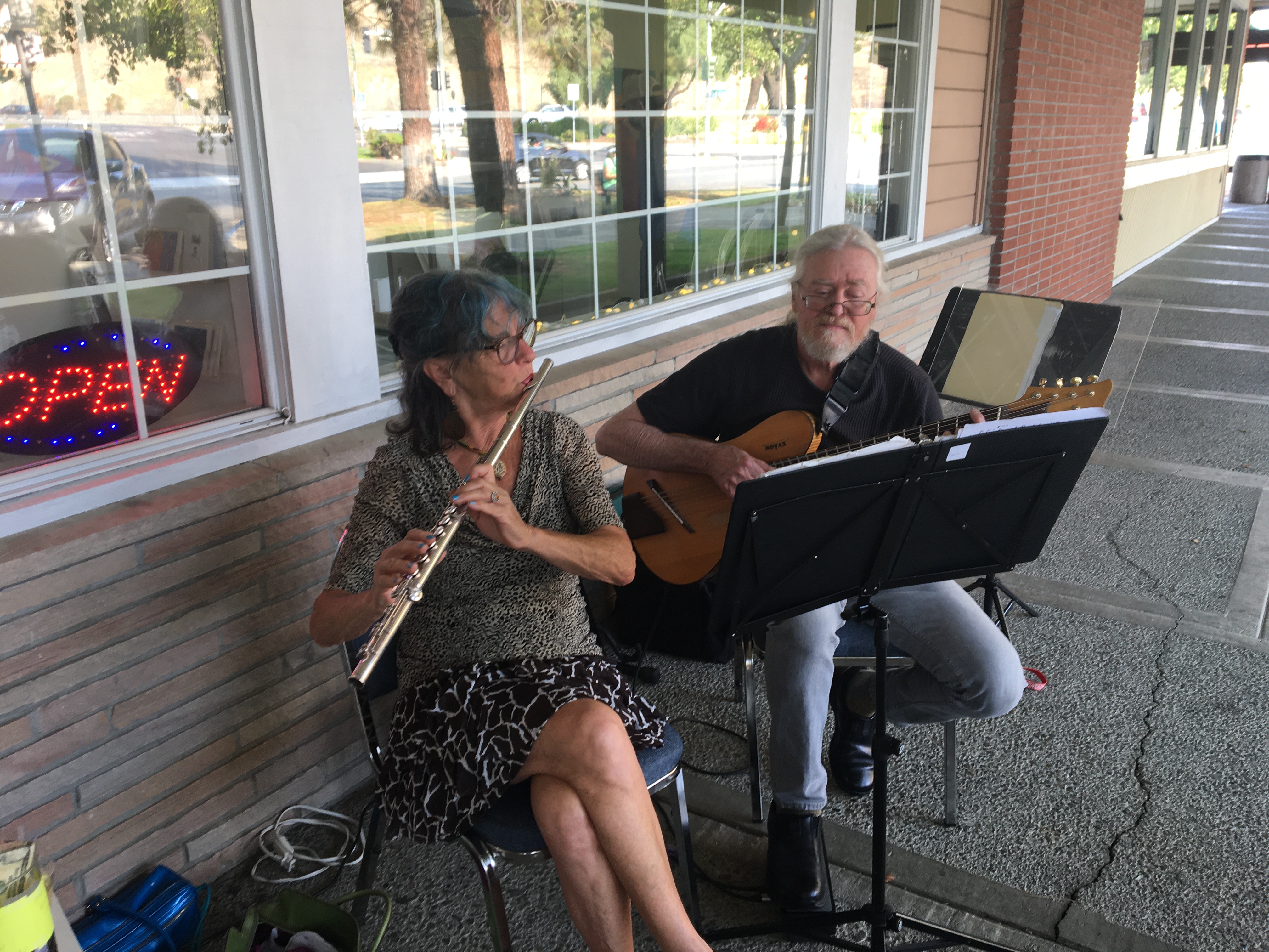 Early in 2020 Covid-19 put an end to receptions held in conjunction with the opening of each new show at the Moraga Art Gallery. To express their gratitude for community support since then, the gallery’s members invited the public to a special reception on Saturday, April 24th from 5:00 to 7:00 pm, which was held in the plaza in front of the gallery at 432 Center Street in Moraga’s Rheem Shopping Center.