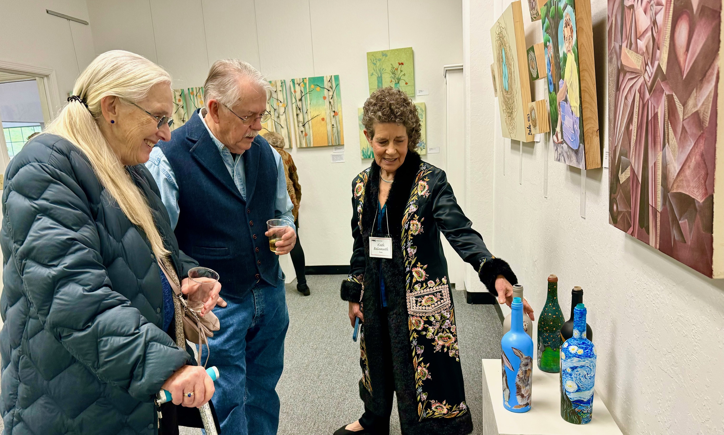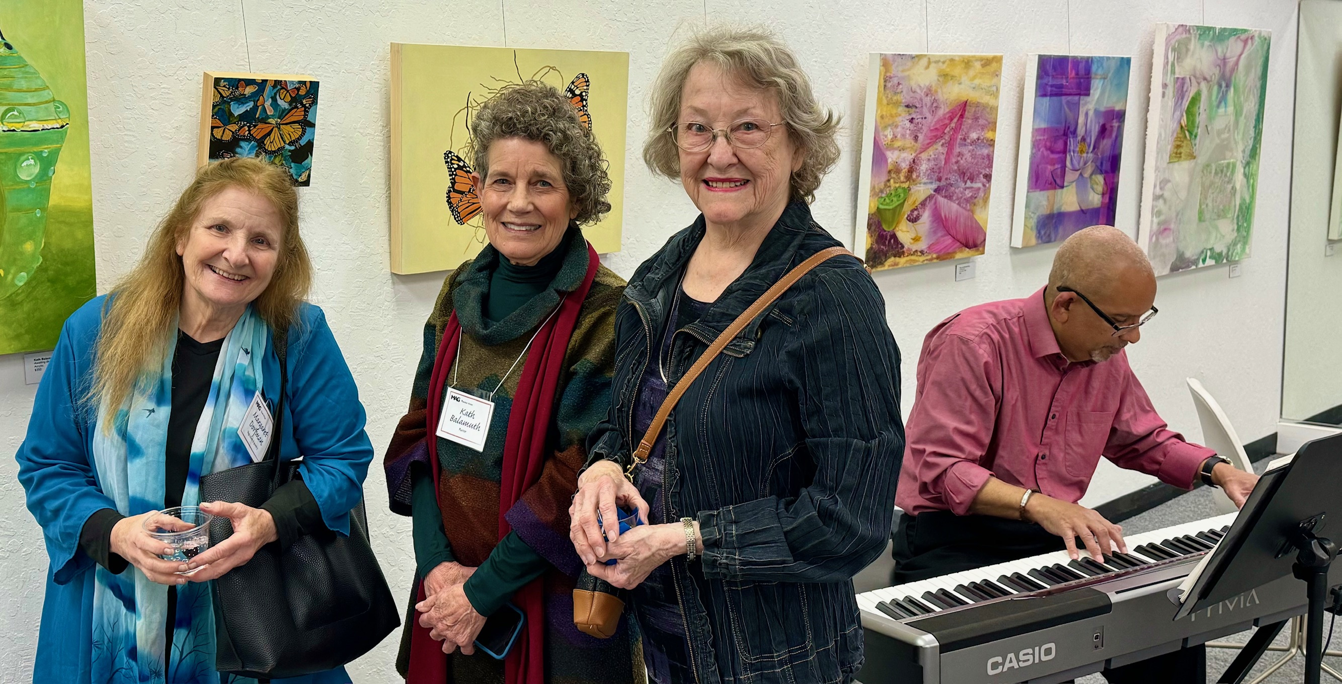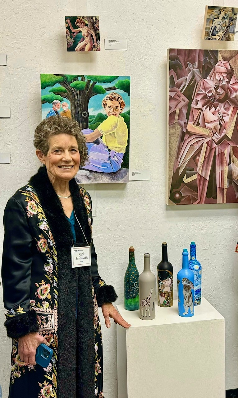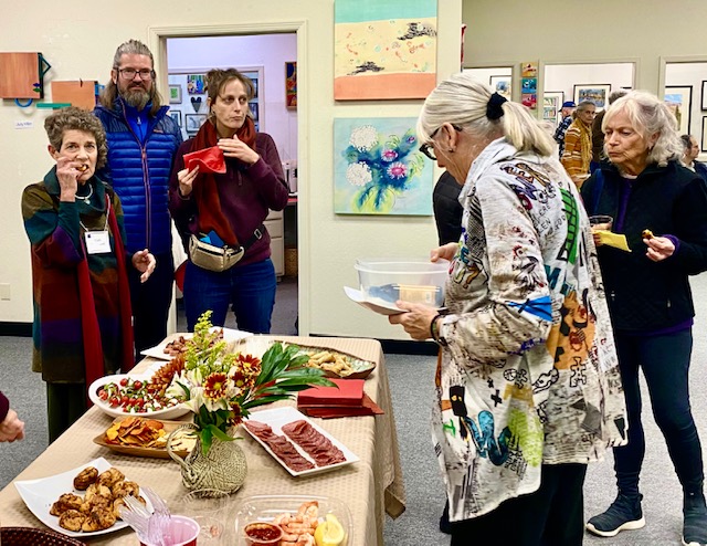 The well attended Moraga Art Gallery Reception celebrated the exhibition, Stories on Canvas, featuring the work of gallery members, Kath Balamuth and Jill Landau, and guest artist Karen Mason, on January 27, 2024 from 3-5pm.