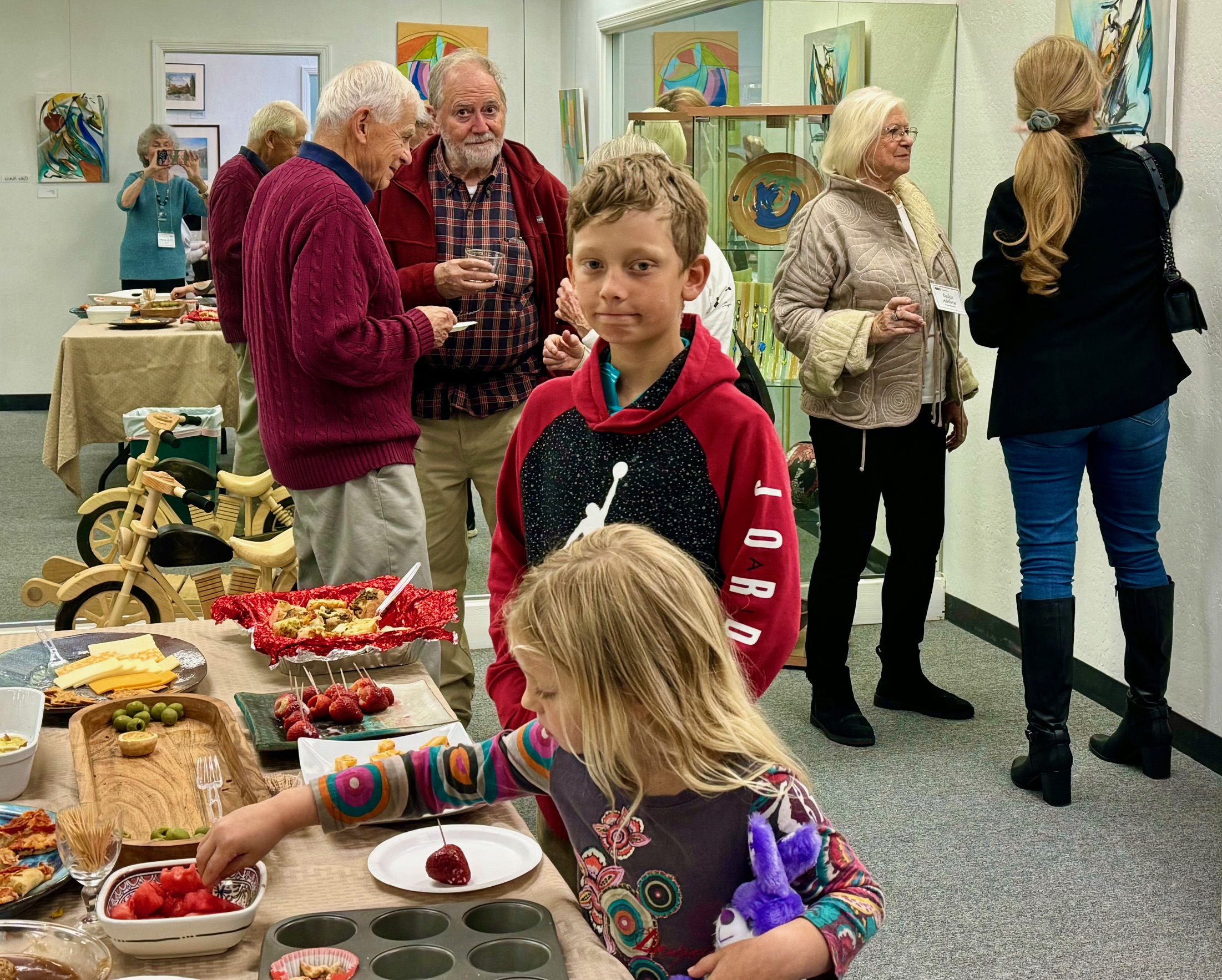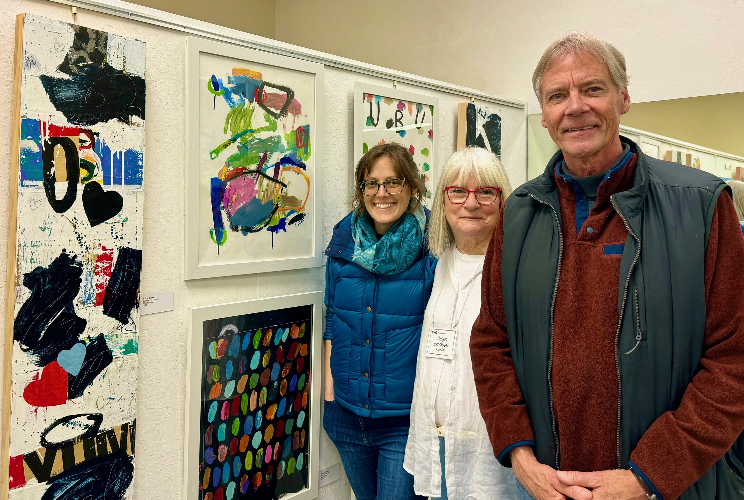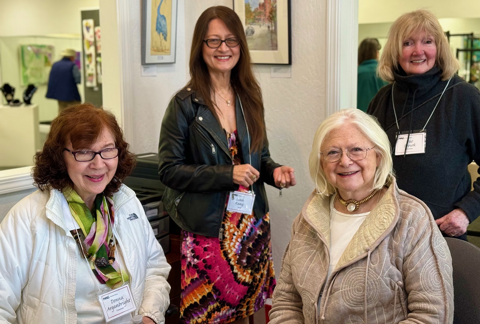 The well attended Moraga Art Gallery Reception celebrated the exhibition, Stories on Canvas, featuring the work of gallery members, Kath Balamuth and Jill Landau, and guest artist Karen Mason, on January 27, 2024 from 3-5pm.