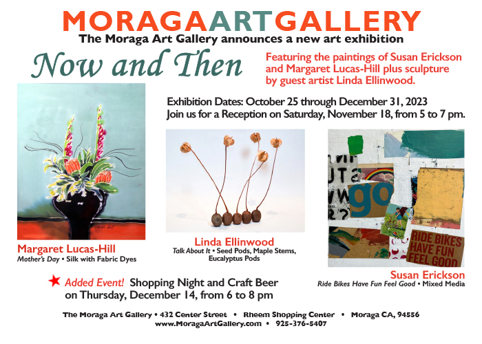 Moraga Art Gallery’s gala reception for Now and Then, Saturday, November 18 features the work of Margaret Lucas Hill & Susan Erickson, and guest artist Linda Ellinwood.