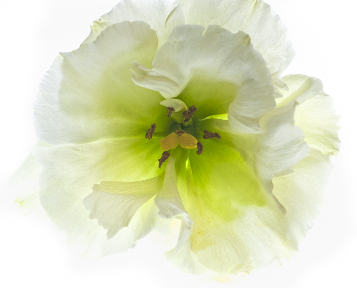 A close-up photograph of a white translucent blossom.